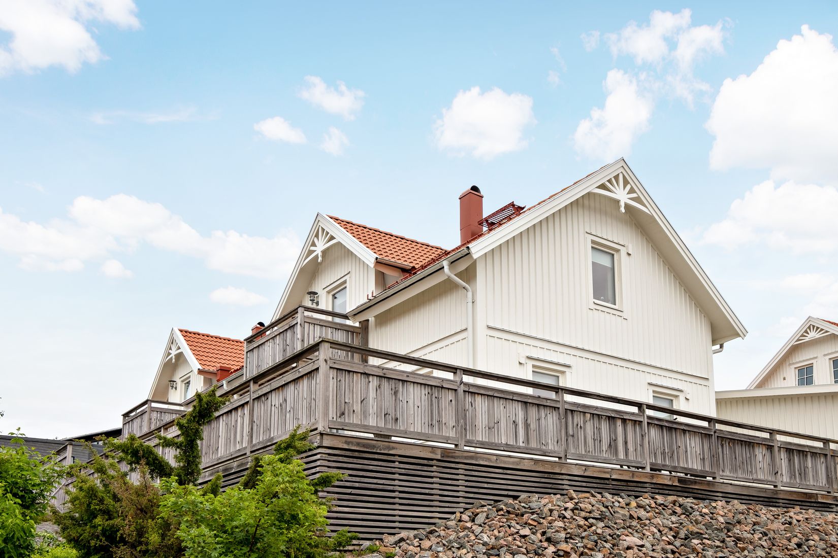 Från vardagsrummet når man även den stora altanen – en perfekt plats för sommarens grillkvällar.