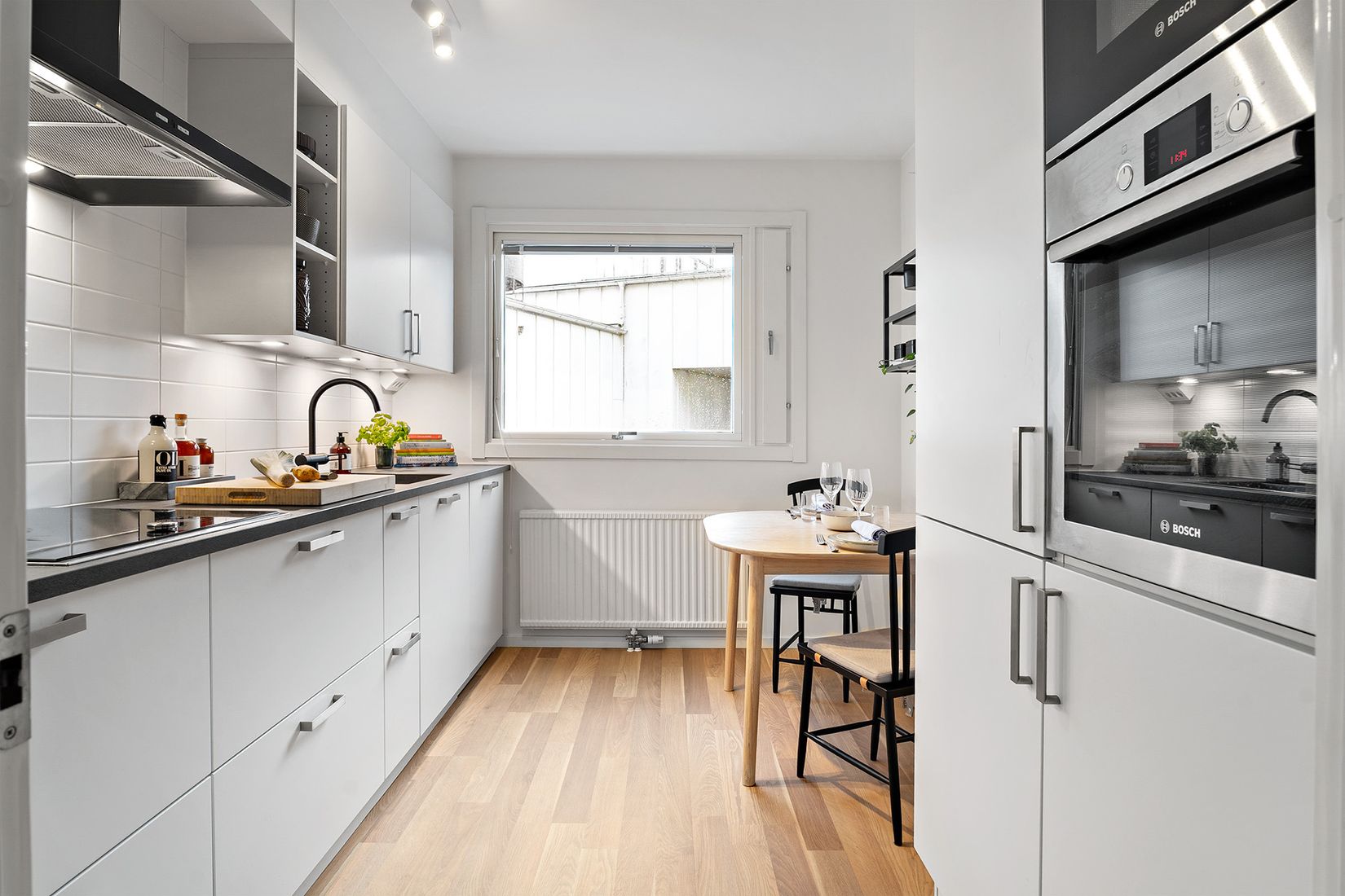 Det nyrenoverade köket från Kvik är stilrent och modernt med gott om förvaring och arbetsyta – perfekt för både vardagsmatlagning och middagar med vänner. Den öppna planlösningen skapar en luftig känsla och gör bostaden lättmöblerad med plats för både säng, soffgrupp och matbord. Från bostaden nås en balkong där du kan njuta av morgonkaffet eller kvällssolen, med en magisk utsikt över Älvsborgsbron och hamninloppet – en vy som verkligen ger bostaden det lilla extra.