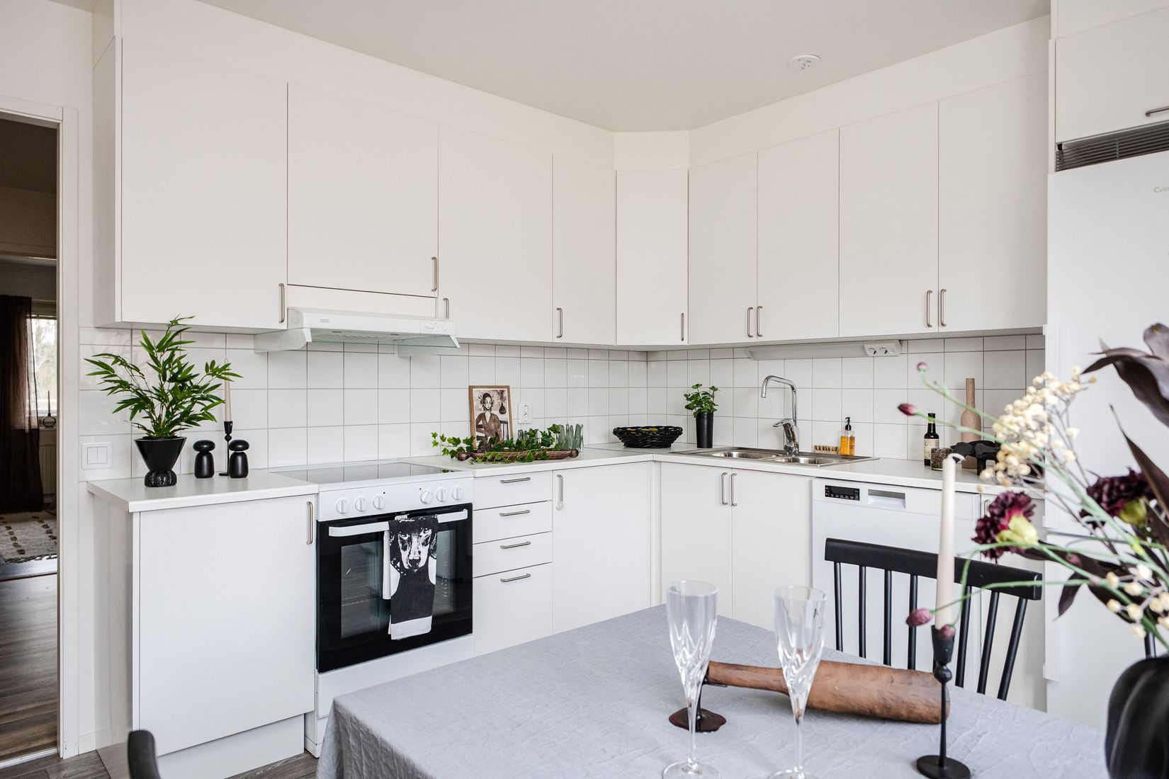 Lägenheten karaktäriseras av ett välplanerat kök som bjuder in till både vardagens matlagning och trevliga middagar, med matplatsen naturligt placerad vid fönstret. Vardagsrummet är hemmets hjärta och skapar en generös och trivsam samlingsplats för både umgänge och avkoppling. Härifrån når du den inglasade balkongen i bästa västerläge, där eftermiddags- och kvällssolen skapar en perfekt plats att njuta av årets varmare månader. Vidare erbjuder bostaden två rogivande sovrum i bra storlek samt ett smakfullt helkaklat badrum utrustat med tvättmaskin som ger extra bekvämlighet i vardagen.
