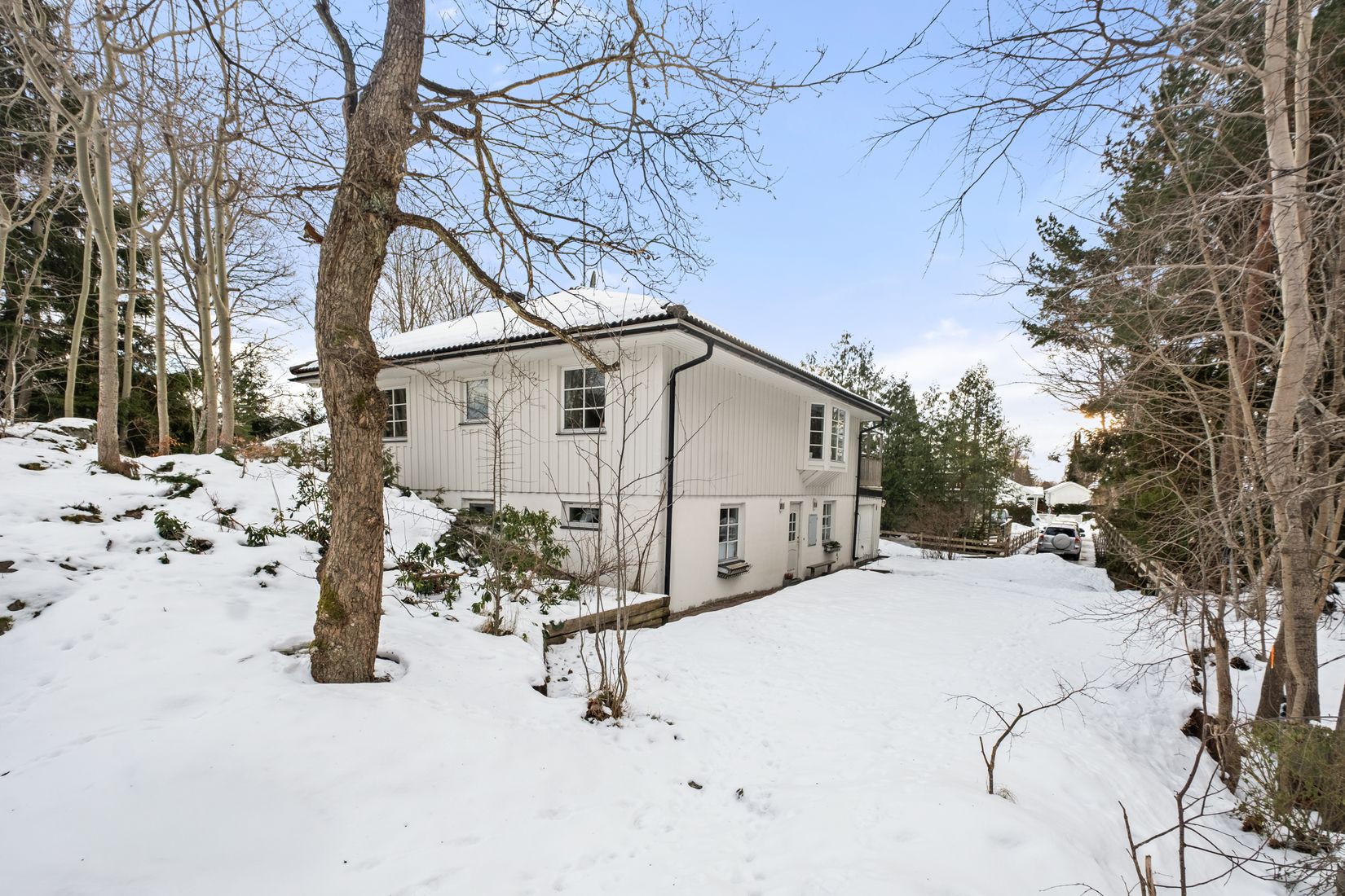 På entréplanet finns idag tre sovrum (originalplanlösning ett sovrum och gillestuga), vilket öppnar upp för exempelvis tonårsdel, gästavdelning, hobbyrum eller hemmakontor. Här finns även hall med golvvärme, duschrum med bastu, klädkammare, tvättstuga samt förråd. Dessutom nås det uppvärmda garaget smidigt från detta plan – en bekväm och praktisk lösning som uppskattas året om.