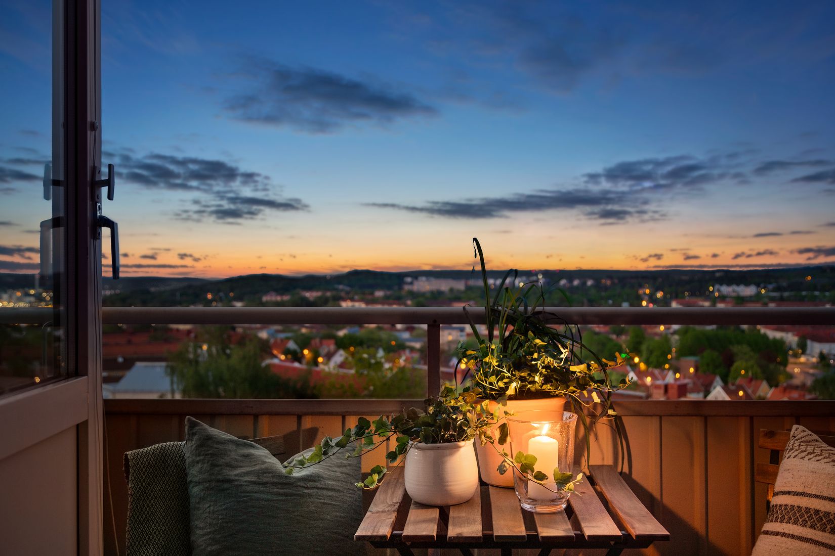 Tack vare det höga och fria läget bor du här insynsskyddat med en vidsträckt utsikt över östra Göteborgs stadsdelar. Den soliga balkongen är både rymlig och djup – perfekt för avkoppling och sociala stunder.