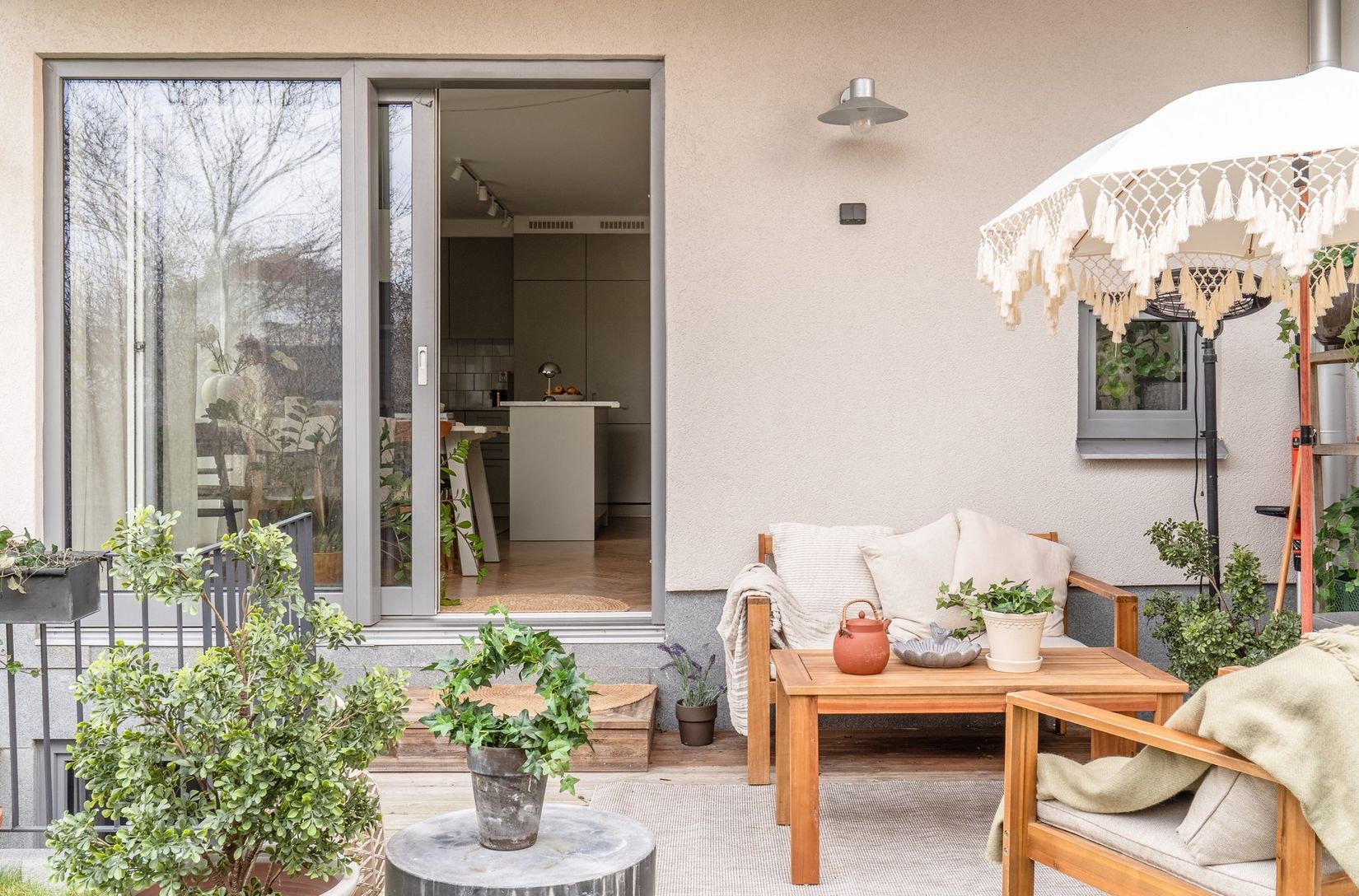Bostaden disponerar totalt 89 kvm golvyta fördelat över två plan, kompletterat med en altan i fritt och soligt läge samt en privat trädgårdsdel om ca 90 kvm med gräsmatta. Tomten är upplåten till lägenheten och nås enbart inifrån bostaden, helt utan genomgångstrafik eller förbipasserande. Grönska i form av syrén och buskar ramar in tomten och skapar en avskild, trygg och barnvänlig oas - fri från insyn och med en påtaglig känsla av lugn och privatliv. Här är det lätt att förstå beskrivningen av boendet som det närmaste man kan komma en villa nära stan, utan villans måsten.