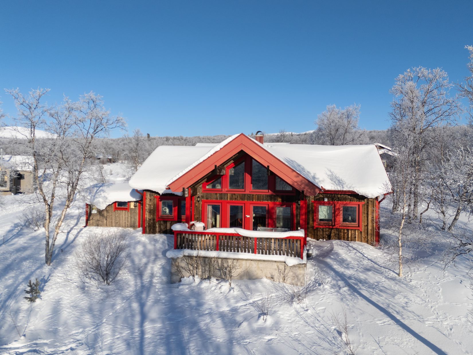 Det stilrena köket är en naturlig samlingsplats med gott om arbetsytor och förvaring. Här kan hela familjen hjälpas åt med matlagningen samtidigt som man njuter av utsikten mot fjällen. Storstugan imponerar med sin generösa takhöjd, härliga ljusinsläpp och värmande braskamin – en perfekt plats för avkoppling och umgänge. Direkt utanför väntar verandan, där man gärna tillbringar soliga dagar med milsvid utsikt över fjällen. En trappa upp ligger loftet med ett allrum som uppskattas särskilt av barn och tonåringar. På vardera sida om allrummet finns två mysiga sovrum med plats för flera bäddar.