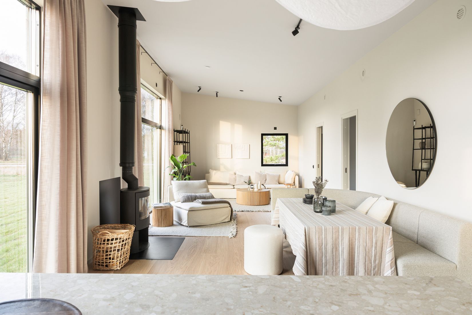 I ett lugnt och grönt sammanhang i Allarp ligger denna nybyggda bostad, uppförd med tydlig arkitektonisk ambition och fokus på rymd, ljus och funktion. Den generösa takhöjden, påkostade fönsterpartierna och de stora sociala ytorna skapar ett hem med ett modernt och tidlöst uttryck. Planlösningen är exceptionellt väl genomtänkt och lämpar sig lika väl för avkoppling som för umgänge.