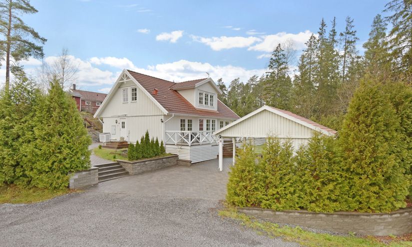 Utemiljön är något alldeles extra. Här finns flera uteplatser i olika väderstreck, pergola och pool som skapar en härlig semesterkänsla på hemmaplan. Trädgården är lättskött men samtidigt grönskande och omgärdad av natur, vilket ger en privat och rofylld känsla året om, lika vacker sommartid som vintertid. Carport och uppfart ger plats för flera bilar och kompletteras av praktiska förrådsutrymmen.