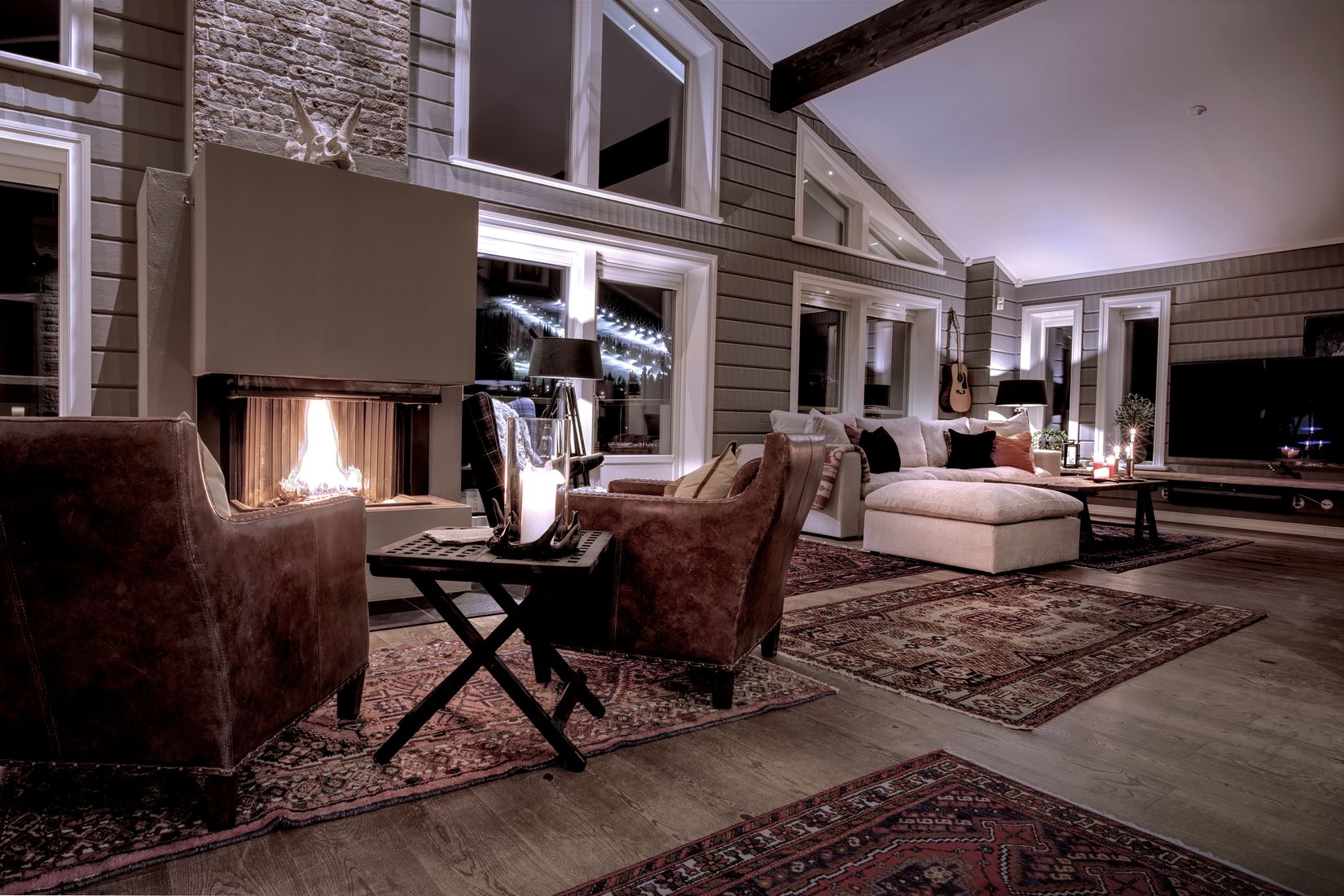 Upplev en plats skapad för avkoppling och umgänge. Entréplanets öppna planlösning mellan allrum och kök, formar en social plats för familjemys och långa middagar, med den murade eldstaden som blickfång. Här bjuds man på en ljus och luftig atmosfär med ryggåstak på nära 6 m. och stora panoramafönster som ramar in fjällandskapet utanför. Den storslagna vyn mot Lindvallens skidbackar kan avnjutas från sällskapsytorna i såväl övre- som undre planet. Den stora balkongen med glasräcke i härligt sydväst-läge, bjuder på samma fantastiska vy och ger goda solchanser under större delen av dagen. Från vardagsrummet nås en generös altan med ett lyxigt spabad. Intill detta finns ”stenrummet” - en unik grillplats där stenväggar skapar ett härligt ”rum” i trädgården, en av Sälenfjällens absolut bästa platser för afterski!?