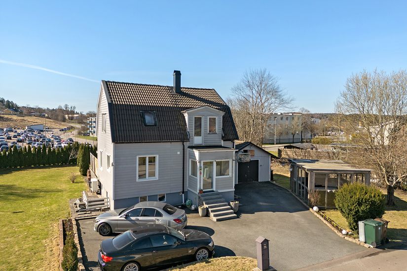 Utvändigt erbjuds ett stort altandäck i soligt söderläge samt en stor, plan tomt med gott om plats för lek och aktiviteter. Här finns även ett rymligt garage med tillhörande förrådsutrymme. Fiber.