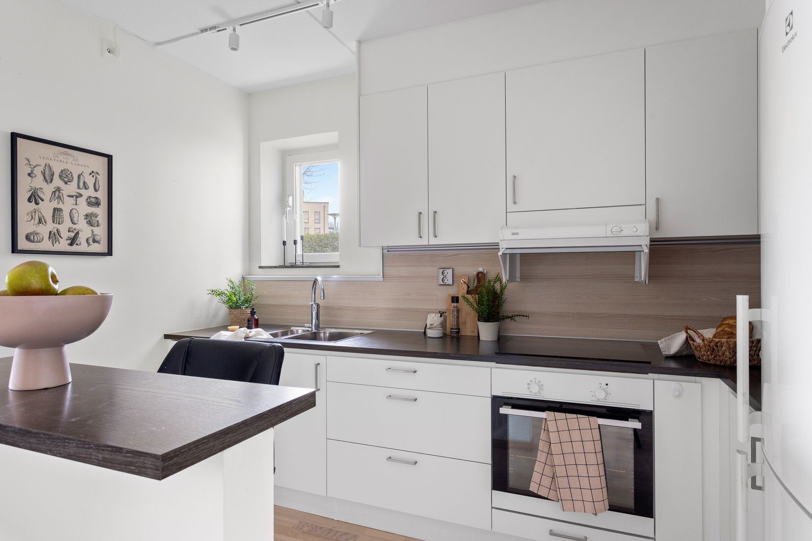 Nu finns äntligen möjlighet att förvärva denna fantastiska 1,5-rumslägenhet med en alldeles särskild och härlig uteplats. Belägen i ett stillsamt område i Viksjö, med närhet till både kommunikationer och all tänkbar service, ligger denna charmiga bostad i en modern och tilltalande fastighet. Lägenheten är smart planerad och präglas av en samtida stil där köket är välutrustat och utnyttjat till fullo med ugn, spishäll, fullstor kyl och frys samt diskmaskin. Den separata sovalkoven kan enkelt göras om till ett avskilt rum. De öppna och sociala ytorna erbjuder gott om plats för en större soffgrupp och TV-möbel.