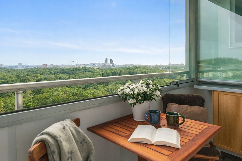 Vidare till bostadens rymliga och välplanerade vardagsrum. Här ges plats för både soffgrupp och matgrupp. Från vardagsrummet når ni den stora och inglasade balkongen som är belägen i ett fantastiskt läge helt utan insyn. Balkongen blir en naturlig förlängning av bostaden och kan nyttjas under flera månader.