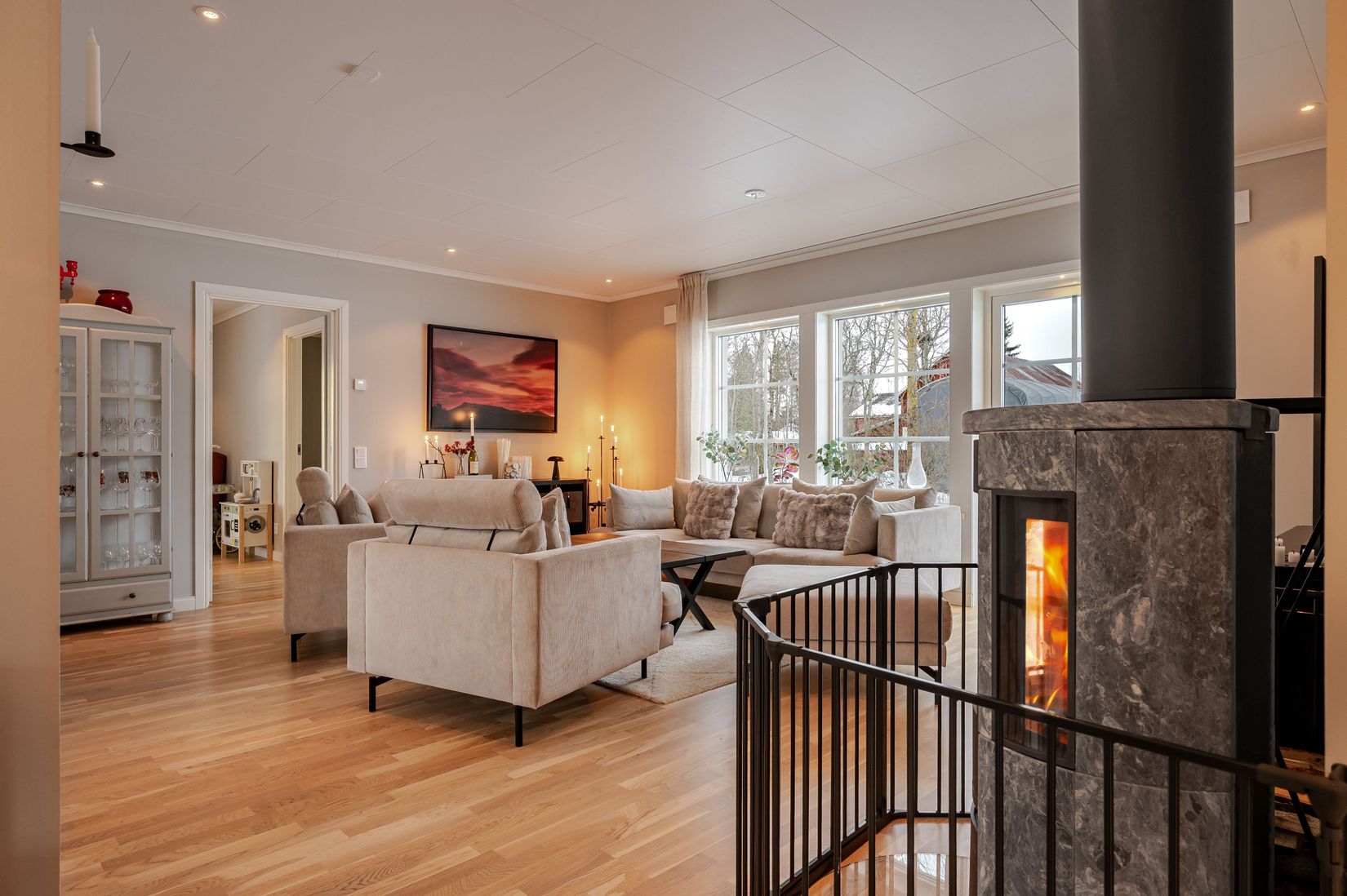 Genomgående vattenburen golvvärme i hela bostadsbyggnaden. I allrummet finns en stämningsfull och värmande kamin. På tomten finns förutom en stor altan också en carport med plats för en bil.
