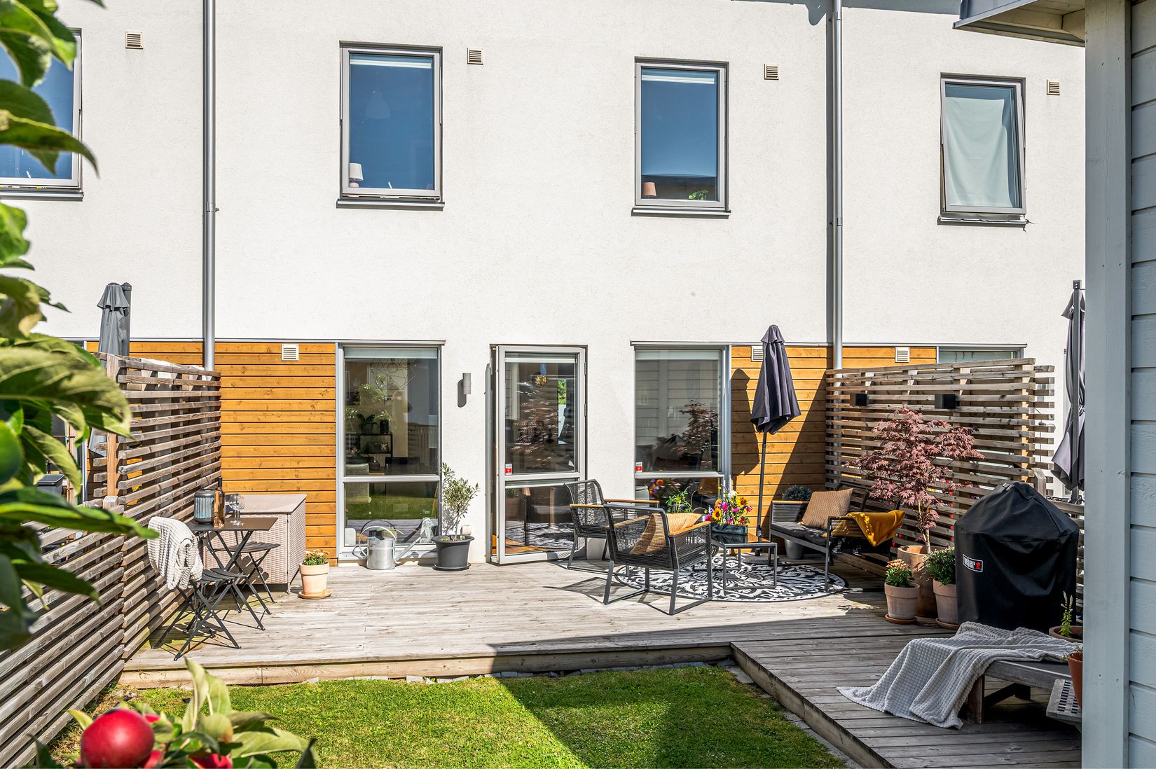 Bostaden är fördelad på två plan och erbjuder en funktionell planlösning som gör vardagen smidig. På markplan möts du av ett modernt kök med öppen kontakt mot vardagsrummet – en naturlig samlingspunkt för familj och vänner. Härifrån når du uteplatsen och den lättskötta trädgården, perfekt för både odling, lek och avkoppling. Entréplan rymmer även praktiska inslag såsom gott om förvaring, badrum, tvättstuga och en flexibel yta som passar utmärkt som hemmakontor. En trappa upp finns tre rymliga sovrum, ett allrum med plats för både mysiga filmkvällar samt ett helkaklat badrum med badkar. Genomgående ljusa ytskikt, smakfulla materialval och välplanerade lösningar gör att hemmet känns inbjudande. Till huset hör dessutom parkeringsmöjlighet och tillgång till laddplats via föreningen.