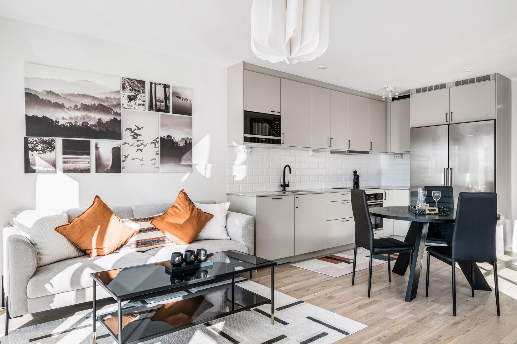 Invändigt möts du av ljusa, luftiga rum med vitmålade väggar som skapar en känsla av rymd och harmoni. Köket är stilrent från Ballingslöv och badrummen är helkaklade med moderna detaljer – allt för att göra vardagen både praktisk och njutbar.