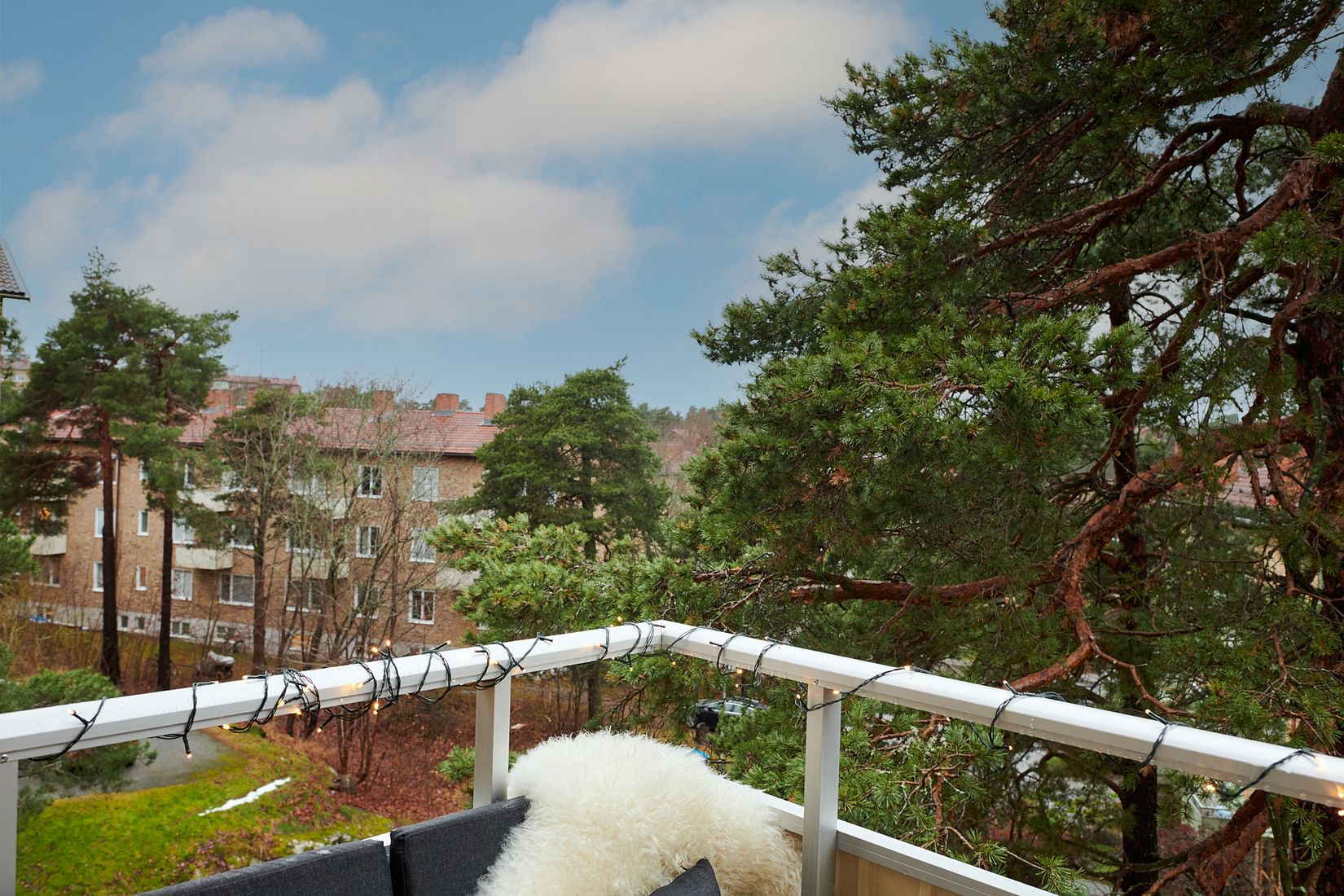 Låt mig presentera en av områdets mest eftertraktade tvåor. På Byggmästarvägen 5 finner du en ljus gavellägenhet högst upp i huset med trädtopparna som närmsta granne. Här bor du med fönster i tre väderstreck, fungerande öppen spis och en balkong i soligt västläge. Bostaden är smakfullt renoverad med vackra originaldetaljer som fiskbensparkett och ett stambytt badrum. Planlösningen är genomtänkt och kan enkelt nyttjas som en mini 3 rok för den som önskar ett extra rum.