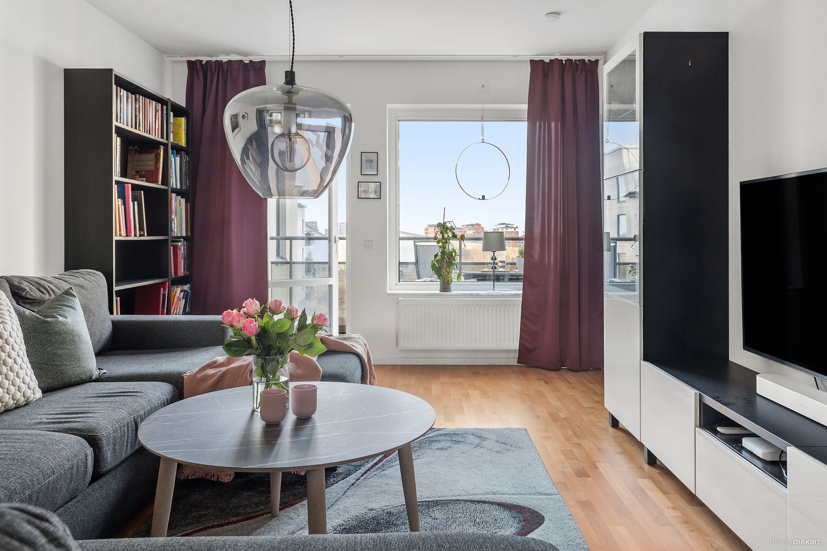 Vardagsrummet är luftigt och ljust med vita väggar och parkettgolv som tillsammans skapar en trivsam och inbjudande miljö. Rummet rymmer enkelt en större soffgrupp med tillhörande möbler. Från vardagsrummet nås den härliga balkongen i västerläge som ger ett fint ljusinsläpp och fungerar som en förlängning av bostaden under årets varmare månader. Balkongen är stor och rymlig med plats för både matbord och en mindre soffgrupp perfekt för avkoppling och sociala stunder i eftermiddagssolen.
