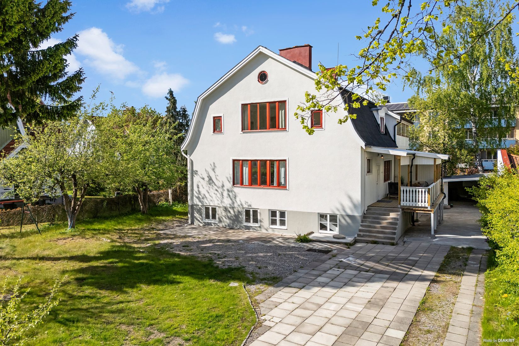 Här bor du på en generös och plan tomt om 879 kvm, där denna ståtliga villa från tidigt 1900-tal reser sig med självklar elegans. Redan vid första anblick möts du av en känsla av rymd, karaktär och tidlös skönhet.