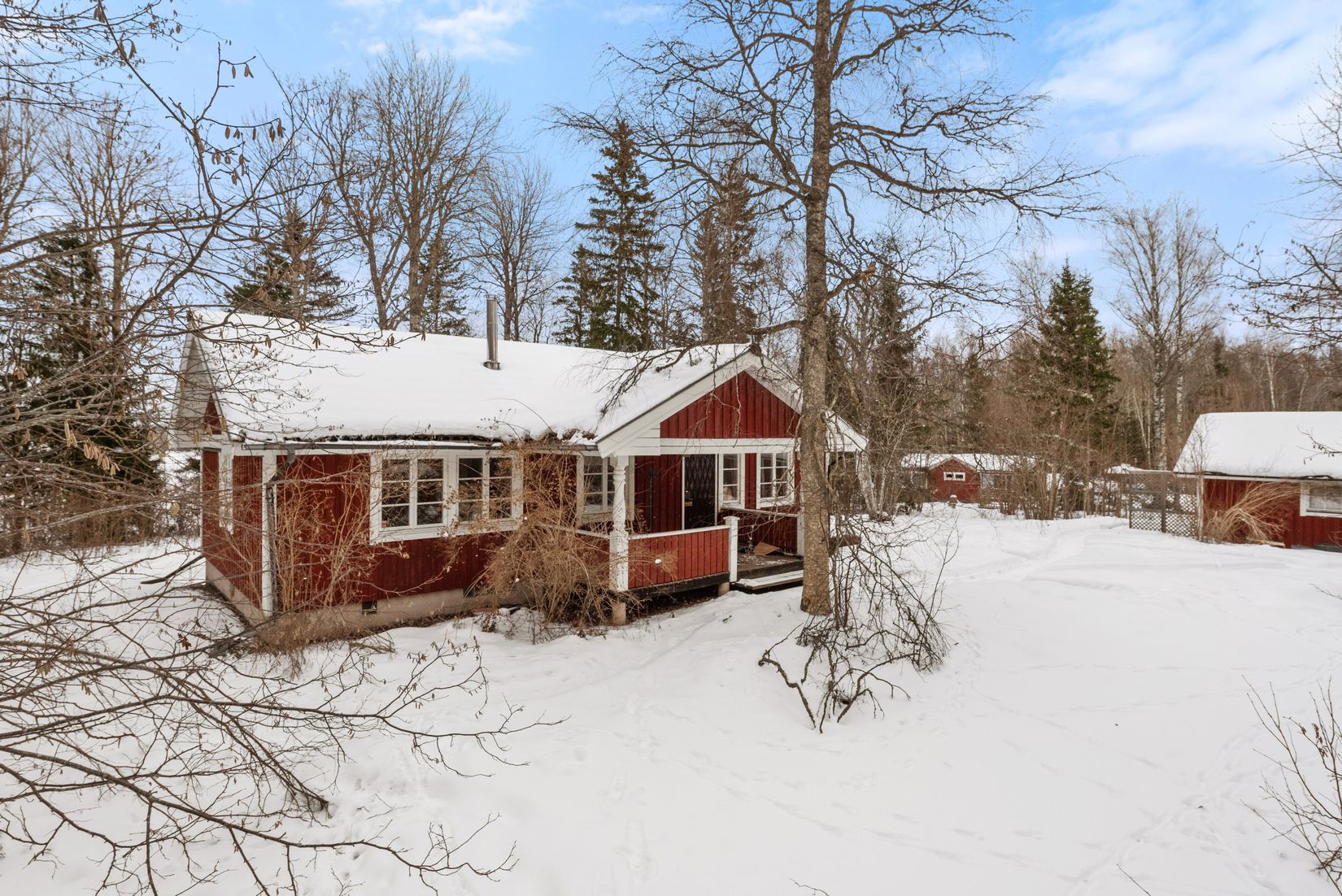 På tomten finns garage med tillhörande förråd samt ett separat gästrum – perfekt för besökande familj och vänner eller som hemmakontor. Den generösa tomten ger gott om utrymme för lek, odling och sommarens grillkvällar, med naturen som närmaste granne.