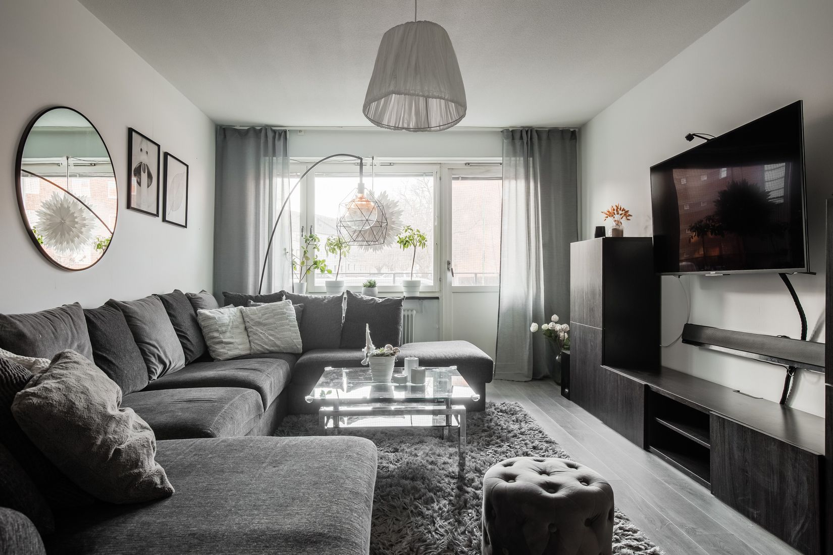Lägenheten inrymmer idag en rymlig entréhall med goda förvaringsmöjligheter, ett fräscht och välplanerat badrum med kombinerad tvättmaskin/torktumlare, separat förråd/klädkammare, stort och ljust kombinerat vardagsrum/matrum med utgång till balkong, ett stort och välplanerat kök med tillhörande matplats, inre hall med goda förvaringsmöjligheter, separat toalett och ett stort samt ljust sovrum. Till lägenheten finns även ett källarförråd och ett matkällarförråd. I källaren finns även två tvättstugor med torkmöjligheter samt cykelförråd.
