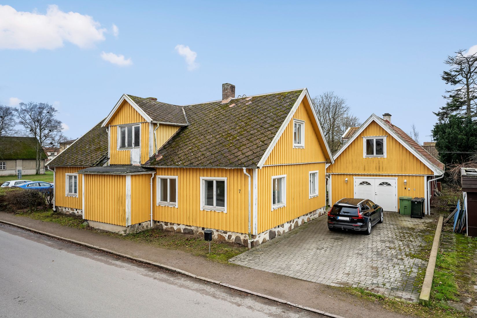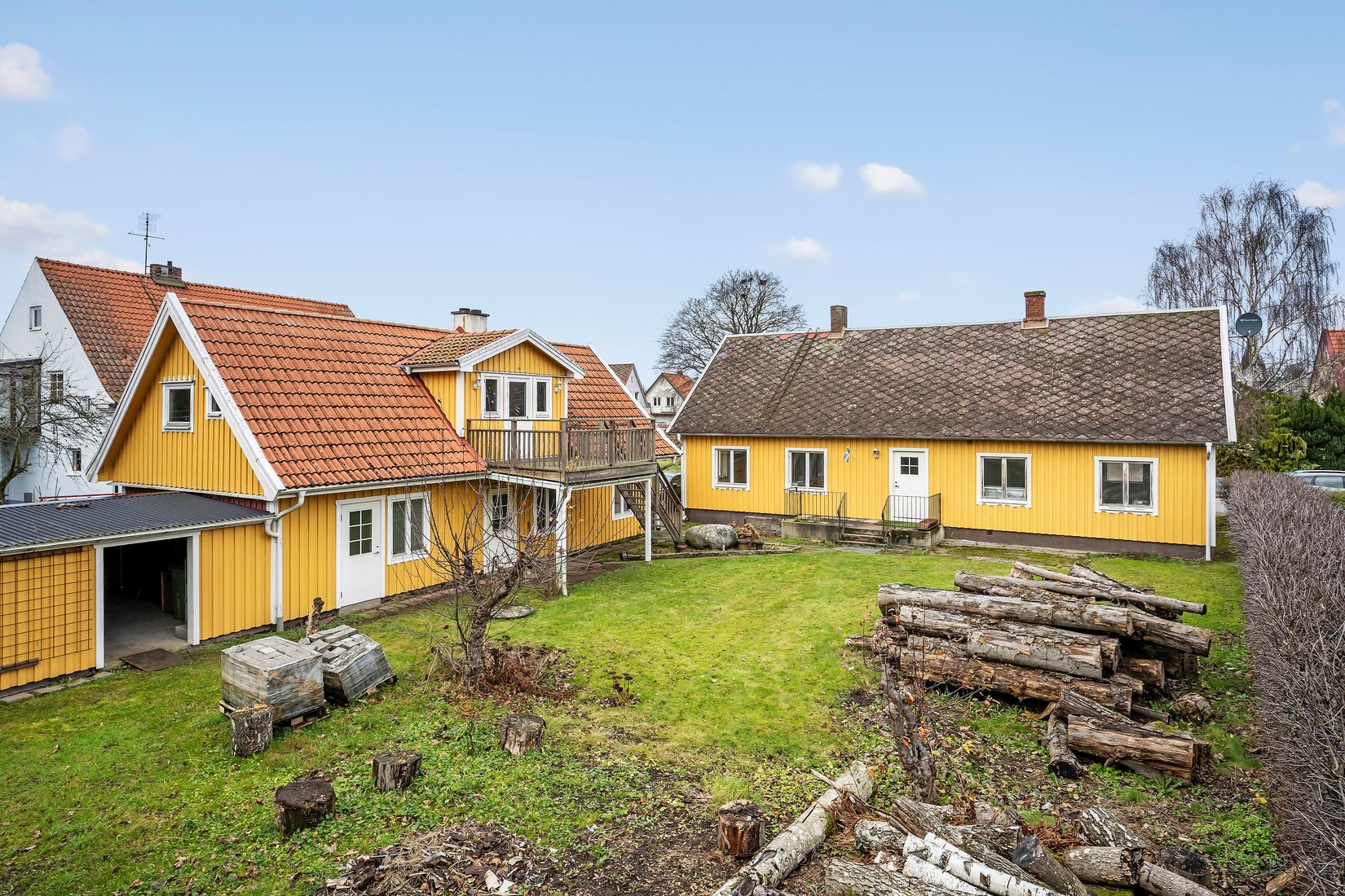 I lugna och barnvänliga Kvidinge erbjuds nu denna 1 1/2 plans villa med stort friliggande garage!