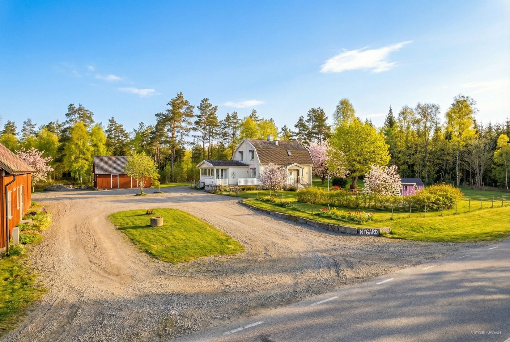 Välkommen till en mysig gård i lantligt läge, med cirka 3,5 hektar total mark, varav omkring 3 hektar utgör betesmark. Här erbjuds ett harmoniskt boende för dig som söker lugn, utrymme och möjligheter – perfekt för mindre djurhållning, hobbyverksamhet eller helt enkelt ett naturnära liv.
