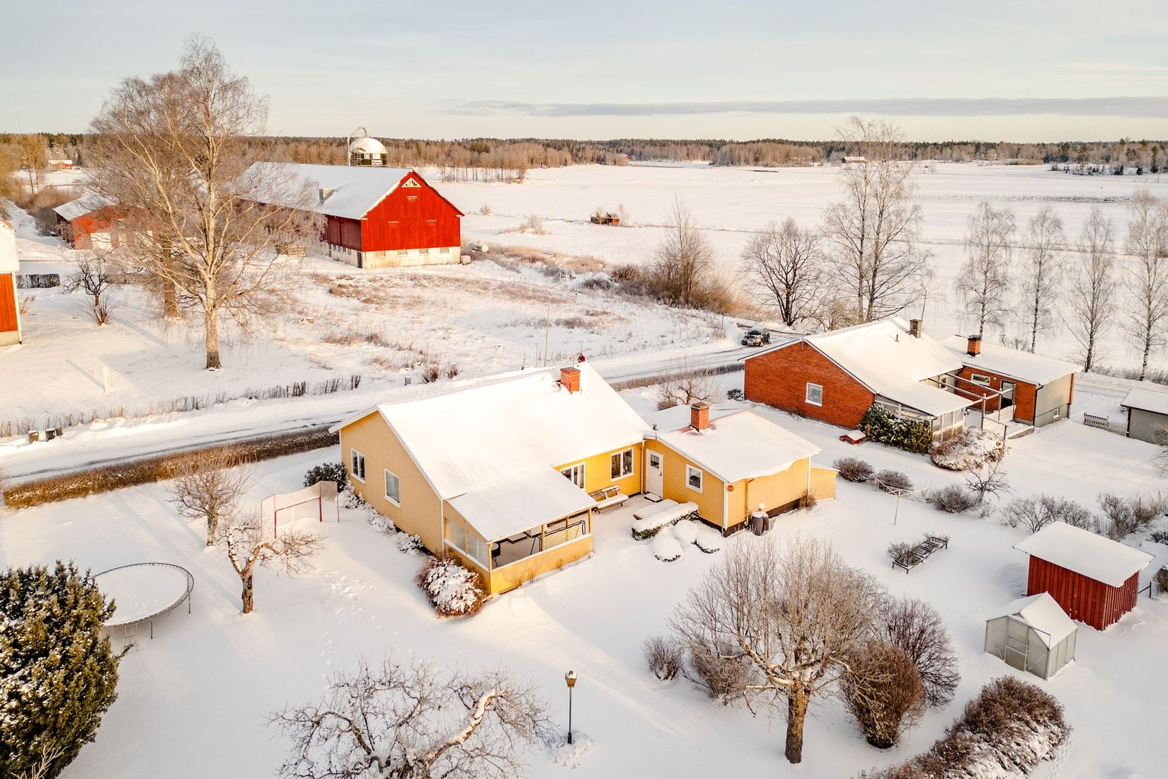 Utomhusmiljön är välskött, med en trädgård som omges av en frodig grönska och en avslappnad utsikt. Här finns en välskött gräsmatta, växthus, blomsterbäddar och en stor altan där man kan njuta av soliga dagar och ljumma kvällar. En ny redskapsbod uppfördes under år 2025. För de bilintresserade finns ett garage samt en uppfart med plats för en bil.