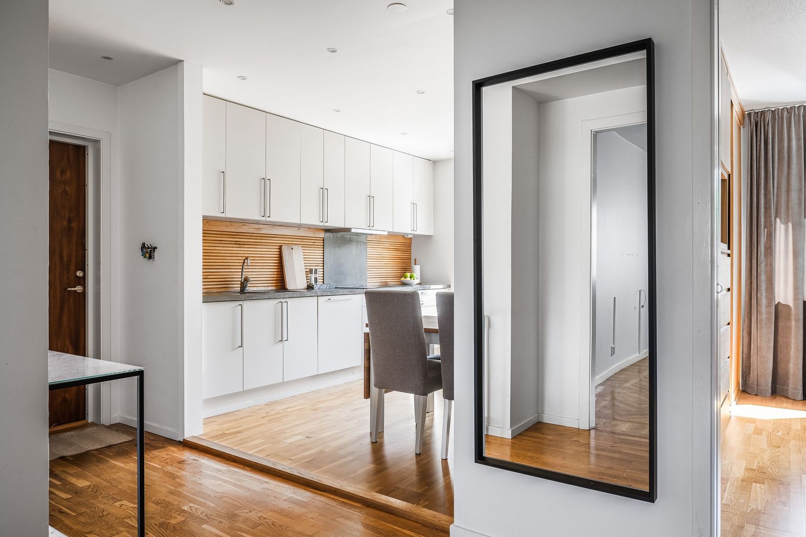 Till lägenheten hör en matkällare och ett vindsförråd.