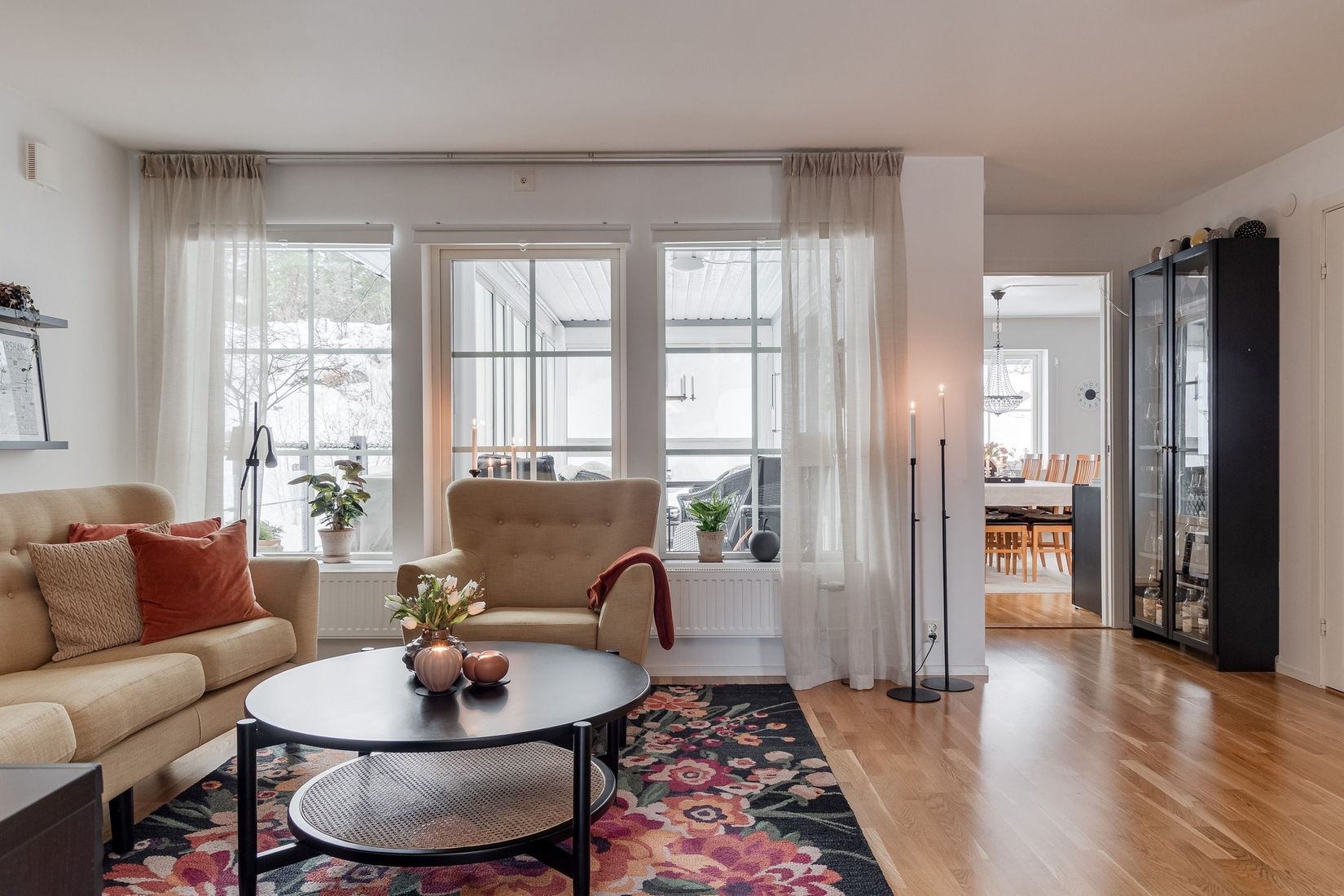 Välkommen till en ljus och välplanerad trerummare som kombinerar funktion, komfort och ett härligt läge! Bostaden är genomgående, vilket skapar ett fantastiskt ljusflöde och en luftig känsla genom hela hemmet. Här erbjuds två rymliga sovrum, båda i bra storlek och med praktisk klädkammare – perfekt för dig som vill ha gott om förvaring utan att kompromissa med yta. Det generösa vardagsrummet bjuder på ett fint ljusinsläpp och gott om plats för både soffgrupp och umgänge. Det stilrena, vita köket är både tidlöst och funktionellt, med plats för en större matgrupp där familj och vänner gärna samlas. Den inglasade altanen blir en naturlig förlängning av bostaden och fungerar som ett extra rum större delen av året. Här finns gott om plats för bord, stolar och till och med en skön fåtölj för avkopplande stunder. Sydvästläge på baksidan ger sol stora delar av dagen och fina kvällar. Det smakfulla och helkaklade badrummet har även det en väl tilltagen yta och inrymmer även tvättmaskin och bra bänkyta.