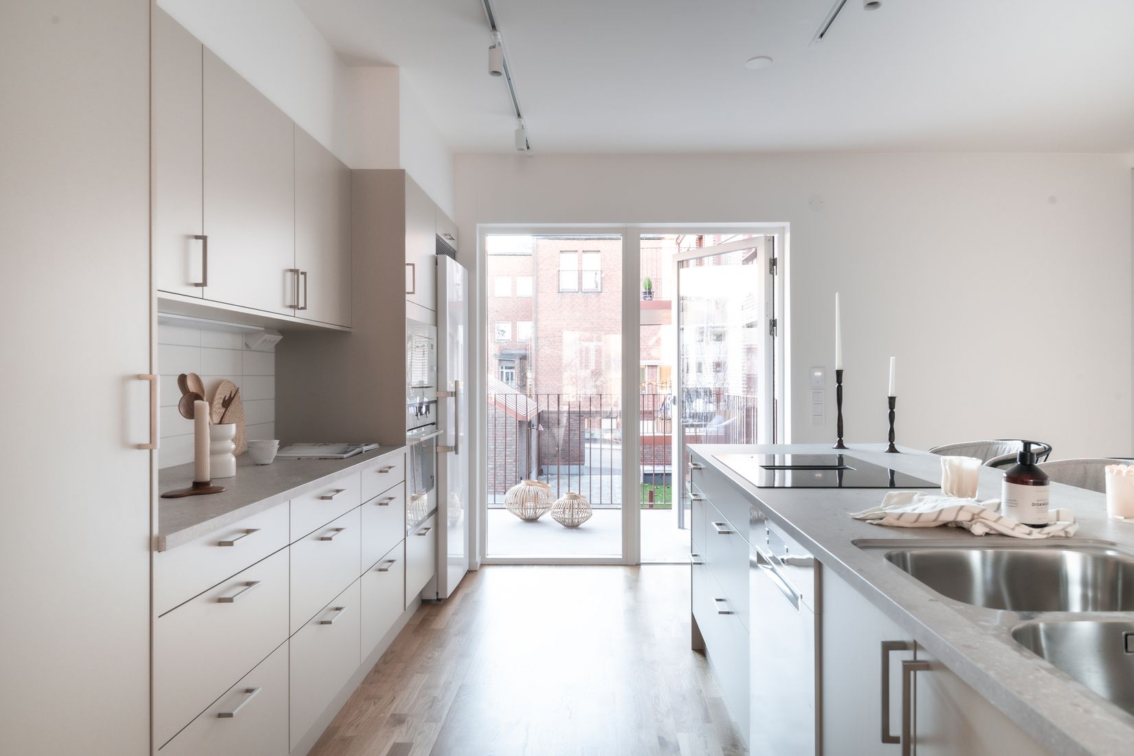 I omtalade designprojektet Nötskrikan finner ni denna fantastiska bostad belägen en trappa upp på våning ett. Här erbjuds ett modernt hem om 115 kvadratmeter fördelat över fem rum och kök där stil, funktion och rymd samspelar på ett mycket tilltalande sätt. Den öppna planlösningen mellan kök, matplats och vardagsrum skapar generösa sällskapsytor med fint ljusinsläpp. Köket är elegant utformat i ljusa, tidlösa toner med gott om förvaring, generösa arbetsytor och en social köksö som naturligt binder samman rummet - perfekt för både vardag och umgänge. Vardagsrummet rymmer både soffgrupp och matsalsdel och har utgång till bostadens balkong som vetter mot tidig morgonsol, en härlig plats för frukost eller en lugn start på dagen. Bostaden erbjuder fyra välplanerade sovrum med bra förvaringsmöjligheter samt två helkaklade badrum, varav det ena är utrustat med tvättmaskin och torktumlare. Utöver detta finns vattenburen golvvärme i hela bostaden. Dessutom har du som boende tillgång till orangeri på taket med härlig utsikt över staden.