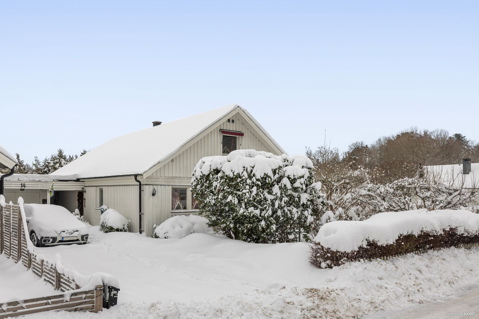 Det finns både ett garage samt gott om plats att parkera flera bilar på tomten.