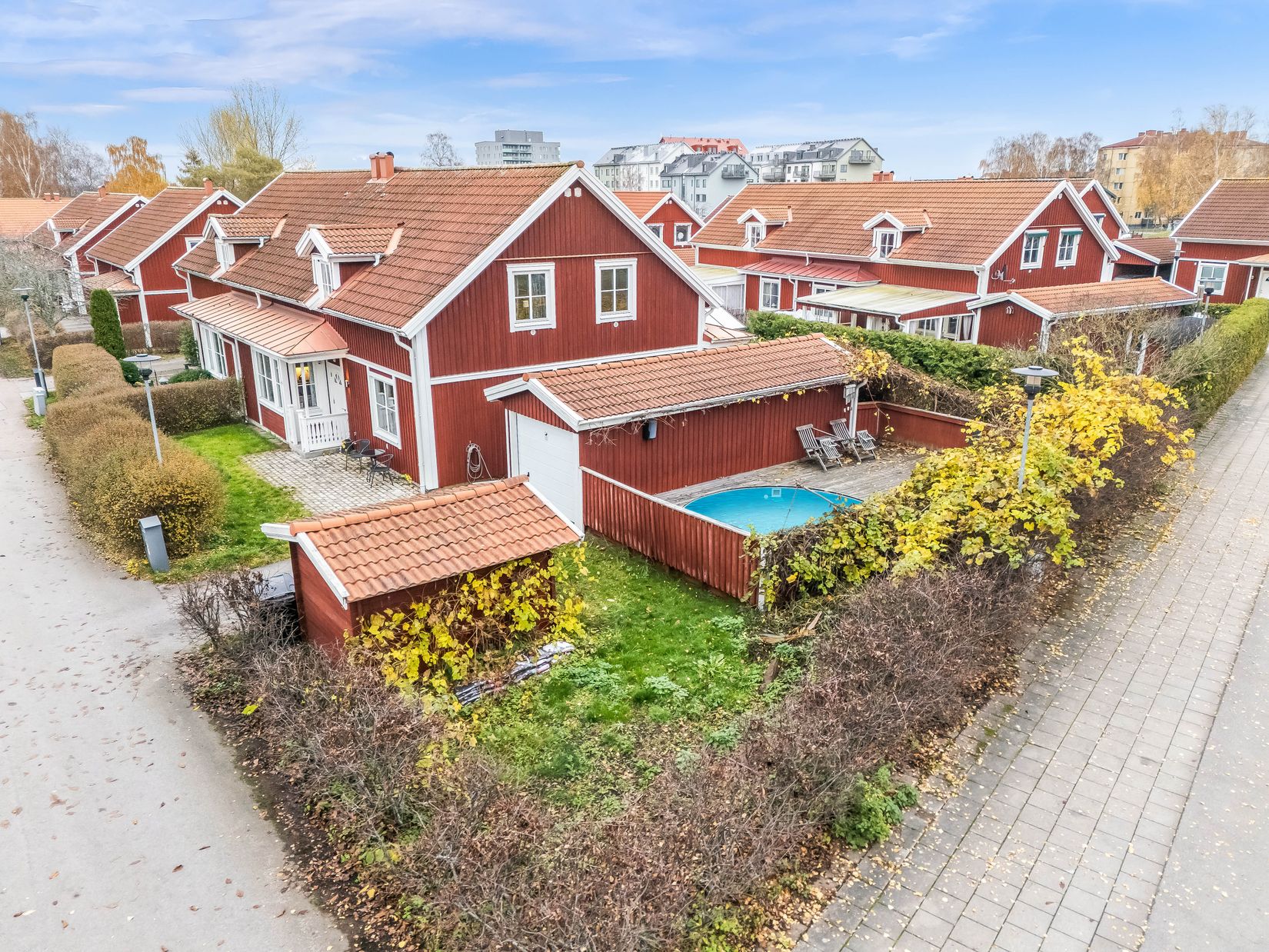 Med sina 161 kvm i 1 ½ plan rymmer huset 7 rum och kök, varav 4–5 sovrum, vilket gör det perfekt för den växande familjen eller för dig som vill ha gott om plats med sovrum och kontor. På varje våningsplan finns badrum det stora vardagsrummet erbjuder mycket ljus från flertalet ljusinsläpp och här finns gott om plats för både vardagsrumsdel och matsalsdel. Tomten är något utöver det vanliga, en hörntomt med härlig uteplats, stort pooldäck och en rund pool som bjuder in till sommarens alla lata dagar. Här finns dessutom gräsyta för lek och aktiviteter samt något så unikt som två egna medelhavspalmer. Till fastigheten hör även garage med förråd samt ett friliggande förråd, vilket ger gott om förvaringsmöjligheter. Närhet till spårvagn, buss, skolor och förskolor. Välkommen hem!