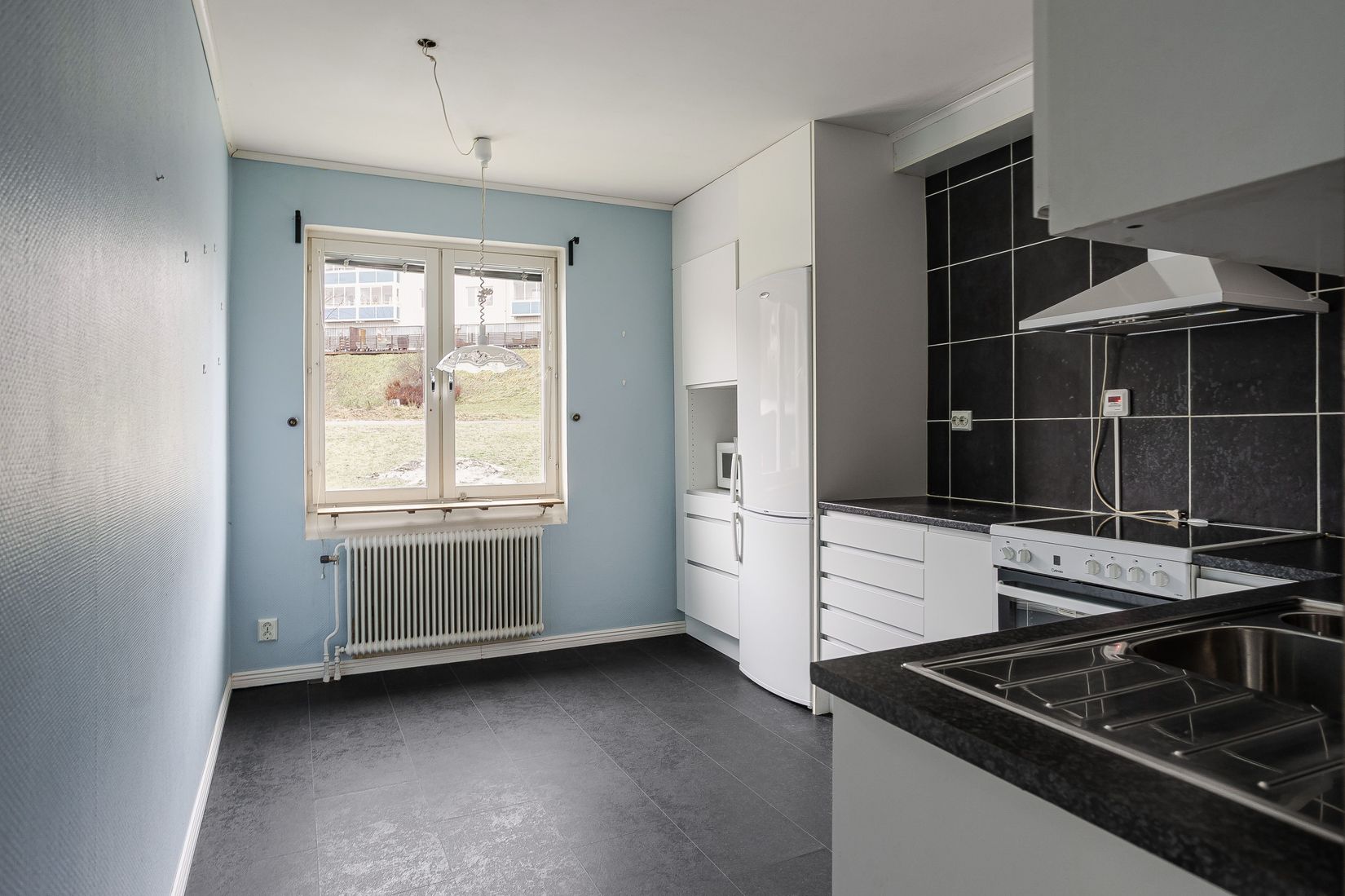 Vardagsrummet har fönster i två väderstreck vilket ger ett fint ljusinsläpp. Helkaklat badrum med plats för badkar om man så önskar.