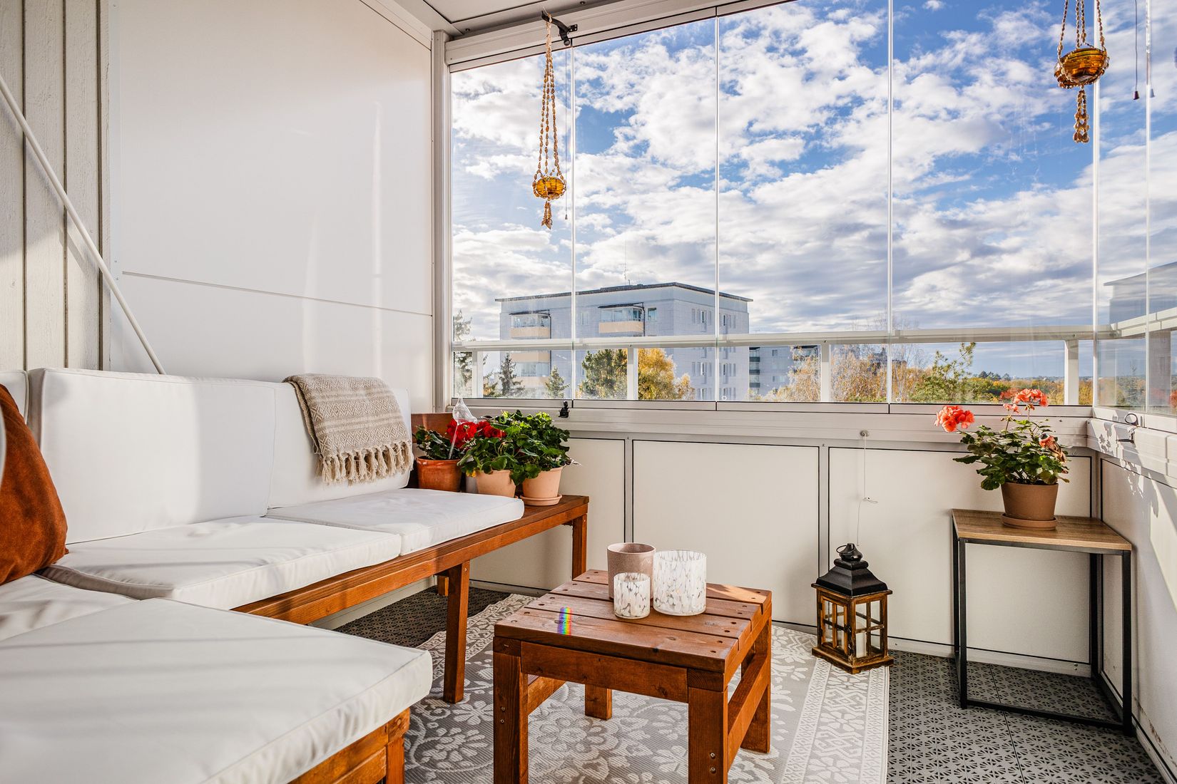 Vardagsrummet är luftigt och inbjudande med gott om plats både gemenskap och avkoppling. De två sovrummen erbjuder gott om förvaring via flera garderober och intilliggande klädkammare - idealiskt för dig som uppskattar ordning och reda. Från det ena sovrummet når du bostadens andra balkong belägen i österläge där morgonkaffet smakar bäst. Badrummet är helkaklat, fräscht och utrustat med tvättmaskin för extra komfort i vardagen.