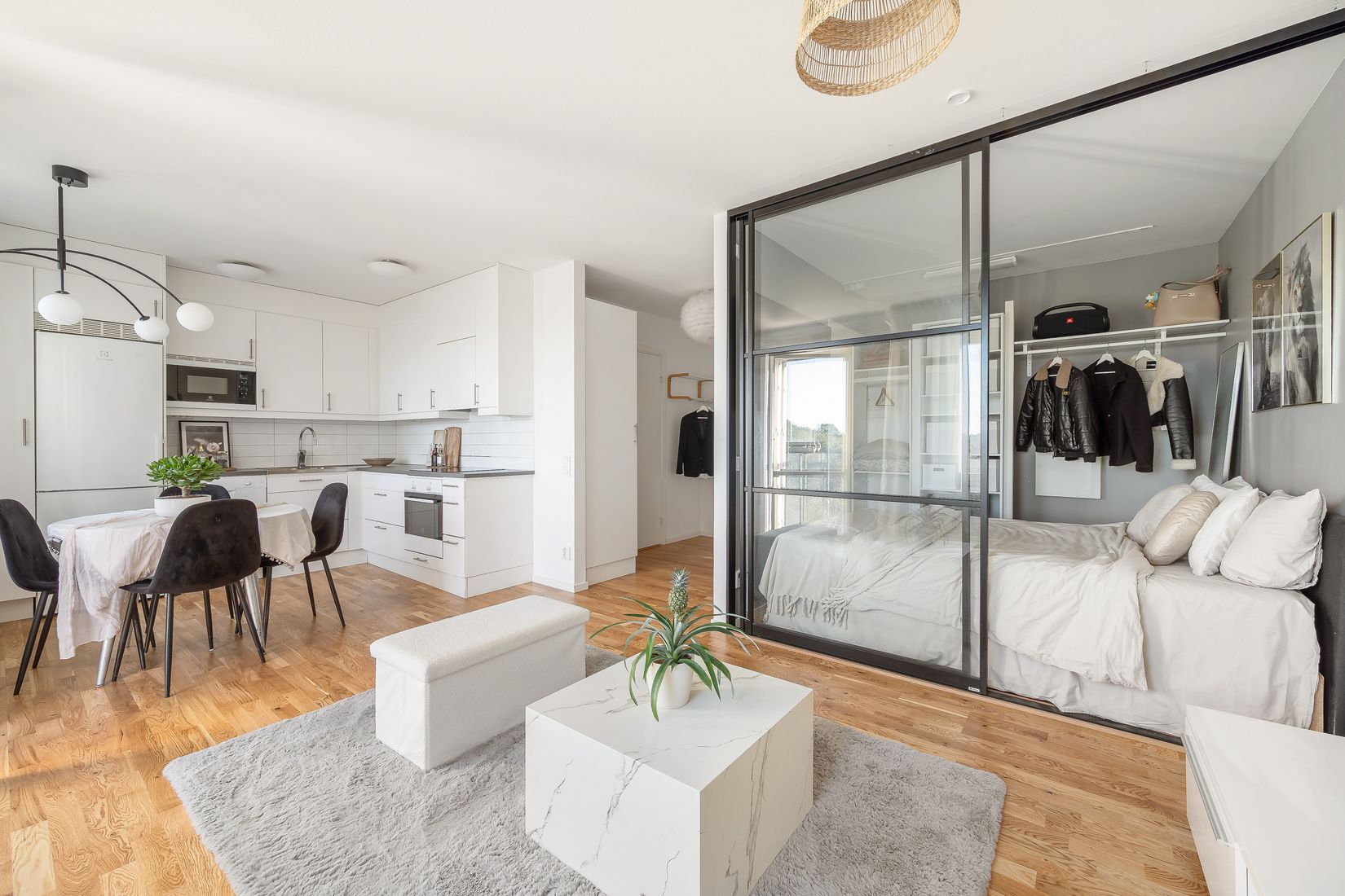 Nu saluförs denna mycket fina och nyproducerade (2019) mini-2:a om 36 kvm i fritt läge med en spansk balkong! Genomgående stilsäkra materialval med både funktion och finess som mittpunkt samt ljusa och härliga sociala ytor. Stora fönsterpartier som bidrar till att ljusinsläppet blir fantastiskt. Bostaden passar utmärkt för singeln eller paret med högt ställda krav. I pulserande Vällingby Parkstad finns allt som hör en levande stadsdel till, tunnelbanan gröna linje tar dryga 24 min till city, flertalet gym och underbara grönområden finns i närheten. Tillträde enligt överenskommelse. Välkommen hem!