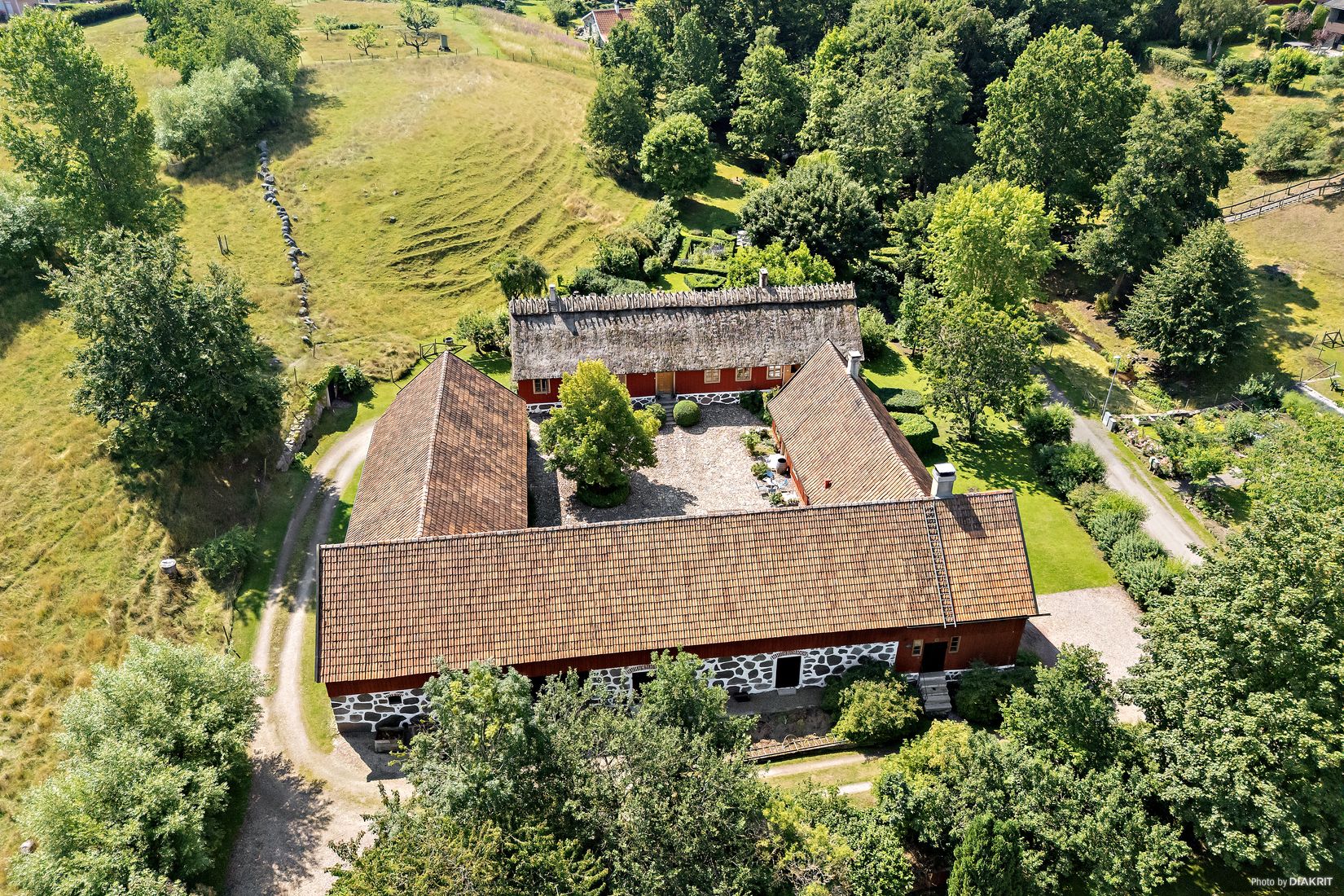 Kringbyggd faluröd skånegård med vasstak, hög gråstensgrund, vackra Simrishamnsdörrar och tjärade laduportar - en levande kulturskatt belägen mitt i en unik miljö. Den lantligt enkla herrgårdsstilen är harmonisk och ger ett själsligt lugn, här känner man verkligen att tiden får stå stilla.