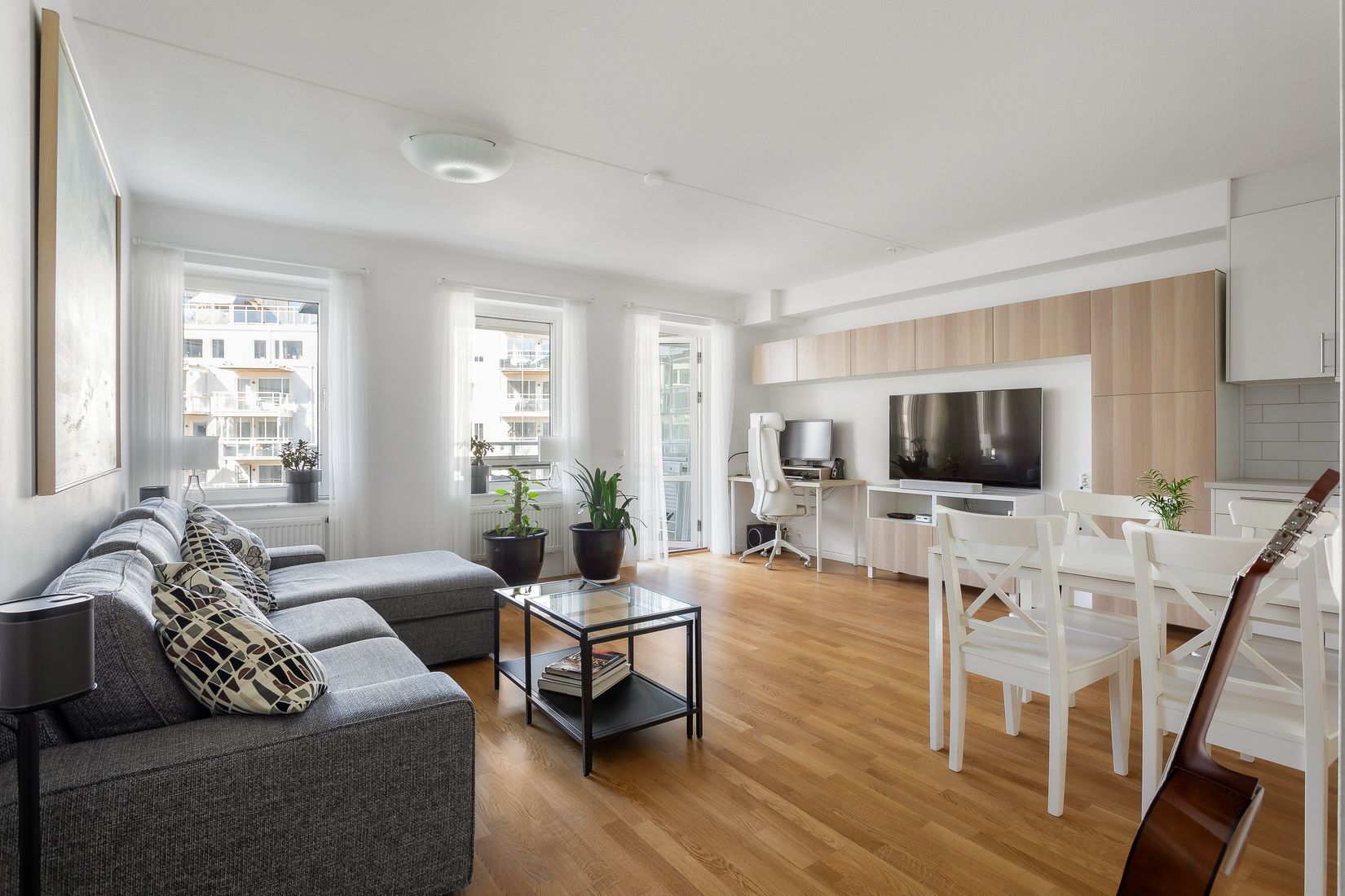 Mycket tilltalande och optimalt planerad bostadsrätt i Brunna Park. Lägenheten har fint naturligt ljus och genomgående ekparkettgolv. Öppen planlösning mellan kök och vardagsrum med stora fönsterpartier. Härifrån når du den mysiga inglasade balkongen med allra bästa solläge som vetter ut till den fina innergården. Snyggt och smakfullt helkaklat badrum med golvvärme. Stort sovrum med bra plats för dubbelsäng och garderober.