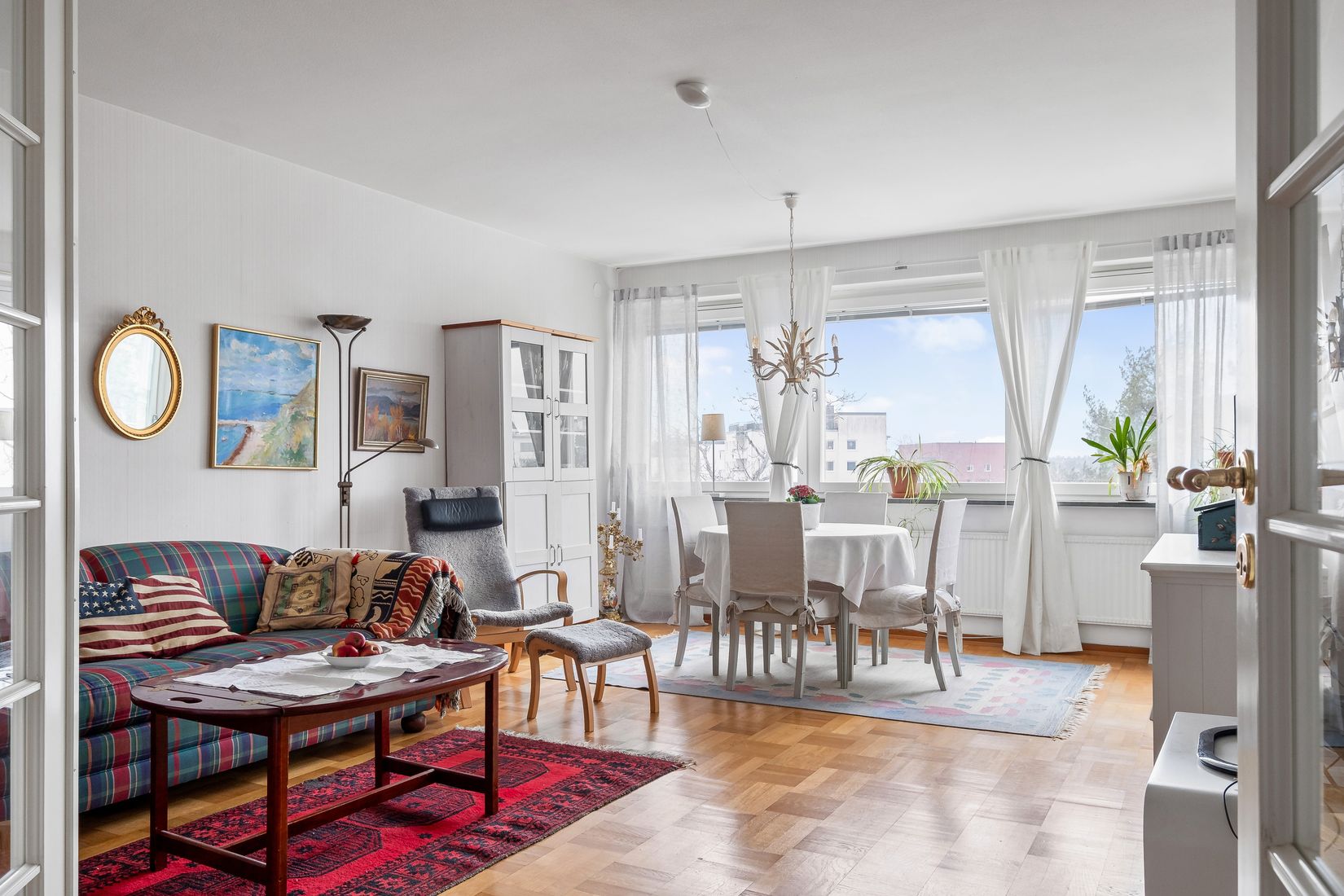 Välplanerad och ljus fyra om 110 kvm belägen på populär gata med grönområden precis runt knuten. Här är möjligheterna oändliga där ni kan sätta er egna prägel på bostaden. Här erbjuds en stor balkong i soligt sydvästläge med milsvid utsikt, ett vardagsrum med stort fönsterparti och plats för matsalsmöbel samt ett rymligt kök med gott om skåp till förvaring. Utöver de sociala ytorna erbjuds här även tre stora sovrum och gott om plats till förvaring i inbyggda garderober. Badrummet är stambytt och utrustat med golvvärme och badkar, även gäst-wc är stambytt och utrustad med en tvättmaskin. Här får ni dessutom ett bekymmersfritt boende i Brf med väldigt god ekonomi samt de stora renoveringarna bakom sig så som stambyte, fasad, el, tak, balkonger och säkerhetsdörrar. Parkeringsplats med elstolpe tillhör lägenheten. Denna del av Näset är väldigt tyst och lugn men har samtidigt nära till all service som Källängstorget erbjuder samt promenadavstånd till bussar som tar er till Ropsten på knappt 10 minuter.