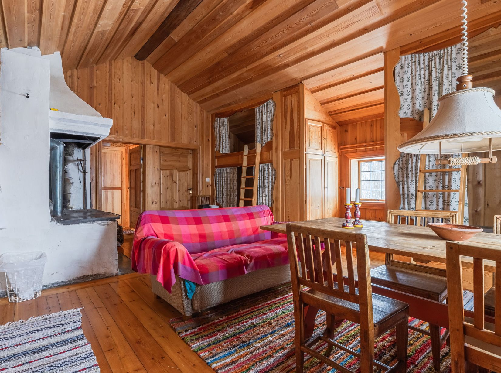 Huset på 42 kvm har vackra originaldetaljer som öppen spis med bakugn, vedspis, breda furugolv och panel. Det rymmer fyra sovplatser i två högsängar och ett loft ovanför badrummet. Köket är utrustat med elspis och diskbänk, och badrummet har dusch, WC, handfat och tvättmaskin. Elvärme och varmvattenberedare ger bekvämt året-runt-boende.
