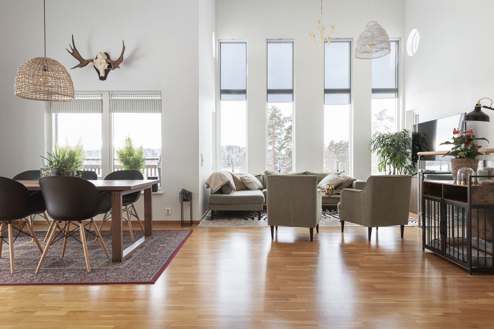 Redan vid första steget in möts du av ett ljusfyllt hem där de generösa fönsterpartierna och de arkitektoniskt spännande vinklarna skapar både rymd och karaktär. Här får ljuset flöda fritt och varje rum känns inbjudande och levande.