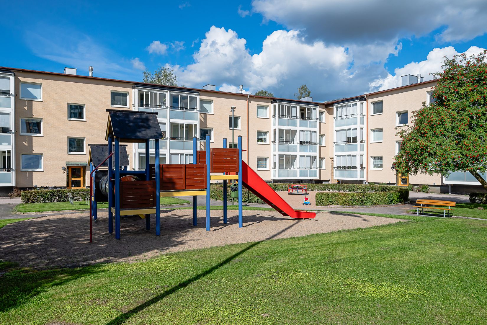 Varmt välkommen till denna trerummare i populära Stenkulla. Belägen på andra våningen med inglasad balkong mot en prydlig och lugn innergård. Hallen går i vinkel med utrymme för avhängningsyta och förvaring. Planlösningen är effektiv och rummen välplanerade. Kök och badrum är renoverade. Vardagsrummet har ljusa ytskikt, parkettgolv, generöst ljusinsläpp och fransk balkong. Det större sovrummet har en separat rymlig klädkammare och härifrån nås balkongen.