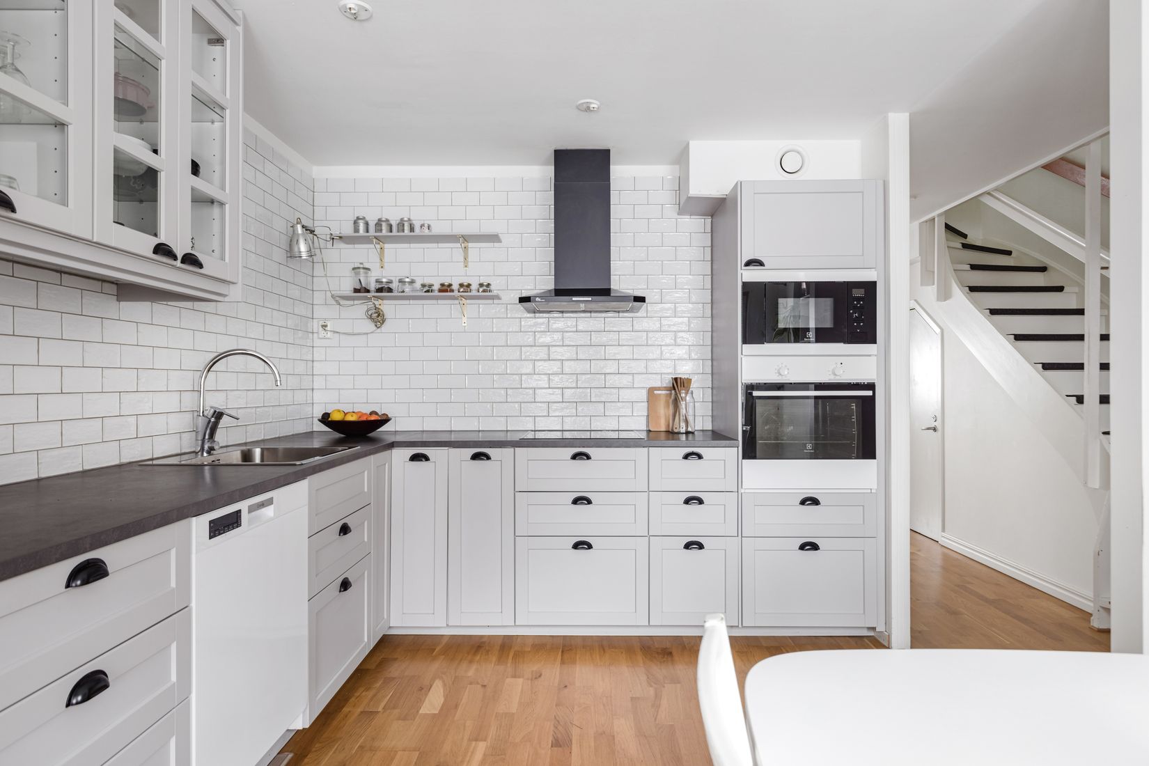 Entréplanet välkomnar med en ljus och inbjudande hall som erbjuder goda avhängningsmöjligheter till höger. Vidare kommer du in i det nyrenoverade och fullt utrustade köket, som rymmer ett matbord för 4-6 personer. Härifrån nås även den inglasade balkongen med läge mot den hemtrevliga innergården. Längre in i bostaden möts du av ett ljust och luftigt vardagsrum med generösa ytor och en härlig utsikt mot grönska. Här finns gott om plats för soffgrupp, mediamöbler och övrigt önskat möblemang. På entréplan finns även ett av bostadens badrum, helkaklat och nyrenoverat i stilrena toner. Badrummet är utrustad med dusch, tvättmaskin samt goda förvaringsmöjligheter i form av en kommod och vägghylla.