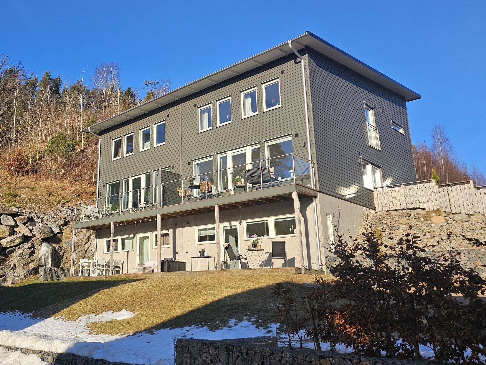 Välkommen till ett av de större parhusen i området med sju rum varav fem sovrum. Här är det lätt att trivas för hela familjen i en modern bostad byggd 2022. På husets framsida finns ett förråd samt plats för parkering för två bilar. Stig in i en ljus hall med gott om plats för avhängning i skjutdörrsgarderob. Till höger finns badrum med dusch och wc samt tvättavdelning med tvättmaskin och torktumlare. Här i husets entréplan är det ljust och luftigt med många fönster och utgång till både uteplats och en stor balkong i bästa söderläge. Köket är välplanerat med stor kyl och frys, diskmaskin, inbyggd micro och ugn samt induktionshäll med stor fläkt ovanför. Köket skärmas delvis av med en bardisk till det rymliga vardagsrummet som erbjuder plats för både matsalsbord och soffgrupp. En trappa upp finns fyra sovrum samt ett badrum med badkar. I husets nedervåning finns ett allrum och ett sovrum.
