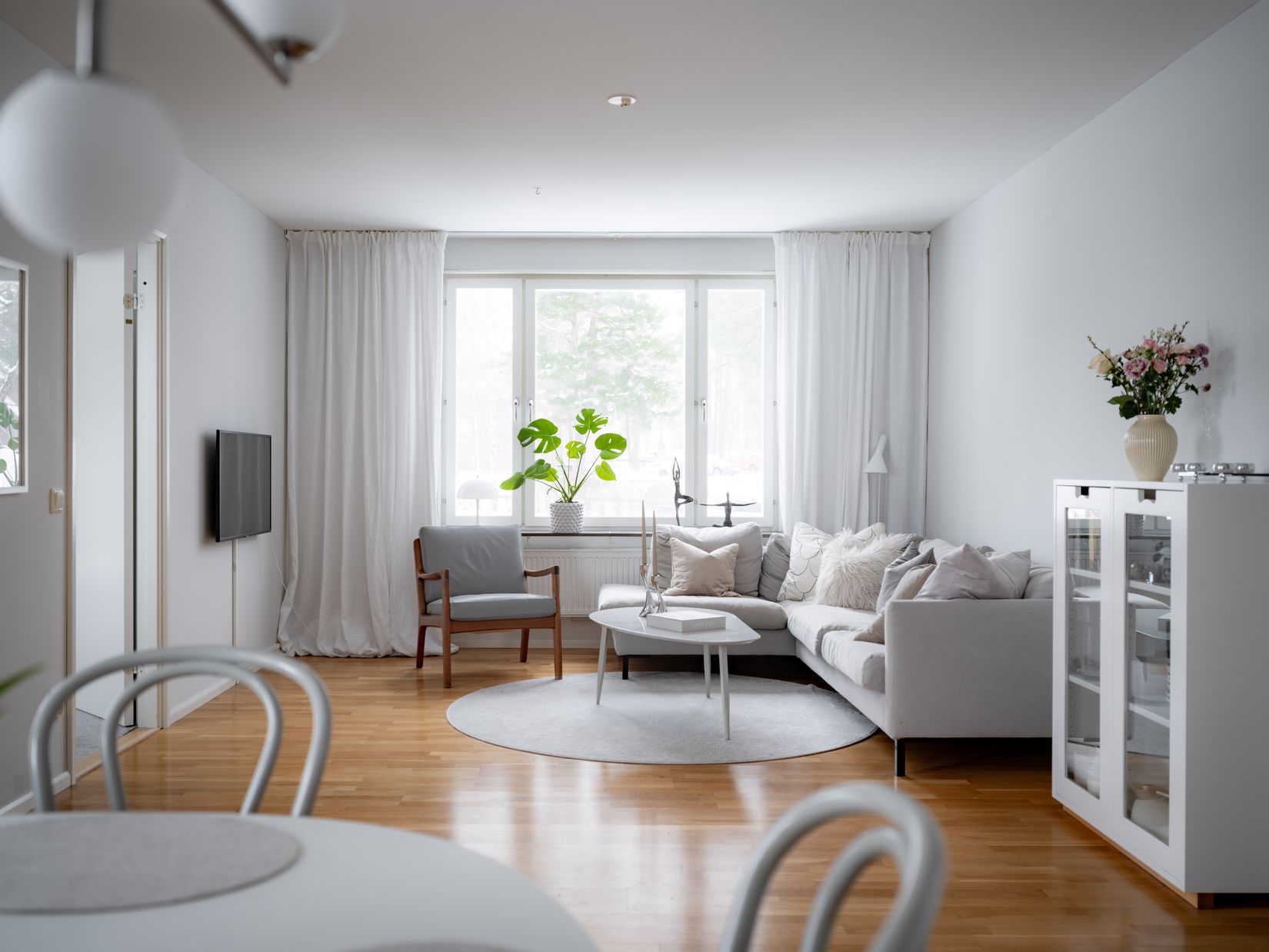 Här erbjuds ett insynsskyddat boende med optimal planlösning och generösa sällskapsytor som skapar ett hem att verkligen trivas i. Det stilrena köket ligger i öppen och social planlösning mot vardagsrummet – en perfekt plats för både vardag och umgänge. Lägenheten disponeras med tre bra sovrum som enkelt kan anpassas efter familjens behov, hemmakontor eller gästrum.