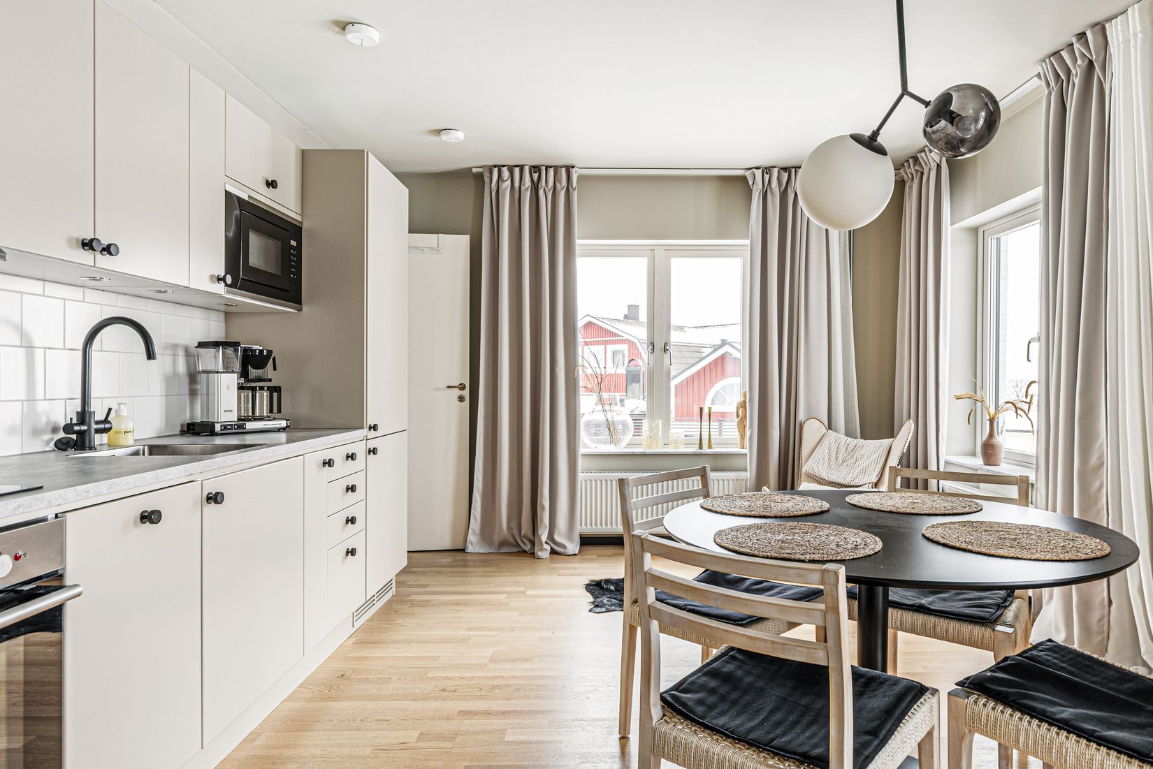 Det finns även möjlighet att låta hotellet sköta uthyrningen när bostaden inte nyttjas, vilket ger möjlighet till löpande intäkter. Hotellfrukost serveras på nedre plan med möjlighet att äta ute. För mer information kan du läsa på deras hemsida: https://www.hanohushallevik.se/