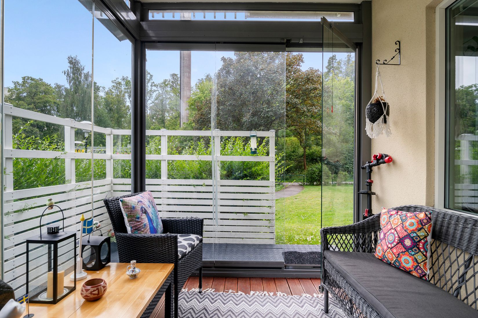 Sällan till salu! Välkommen till denna renoverande lägenhet med radhuskänsla och en stor inglasad uteplats i bra solläge. Bostaden är i fint skick och har generösa sociala ytor med en öppen planlösning mellan kök och vardagsrum, stilrena materialval och ett härligt ljusinsläpp tack vare stora fönsterpartier. Här erbjuds bland annat ett rymligt sovrum och ett väldisponerat allrum som kan användas efter egna önskemål. Stilrent helkaklat badrum, där det är förberett för tvättmaskin. Modernt kök med rostfria vitvaror och gott om plats för matbord. Rymligt och lättmöblert vardagsrum med utgång till den härliga uteplatsen. Vindsförråd tillhör lägenheten.