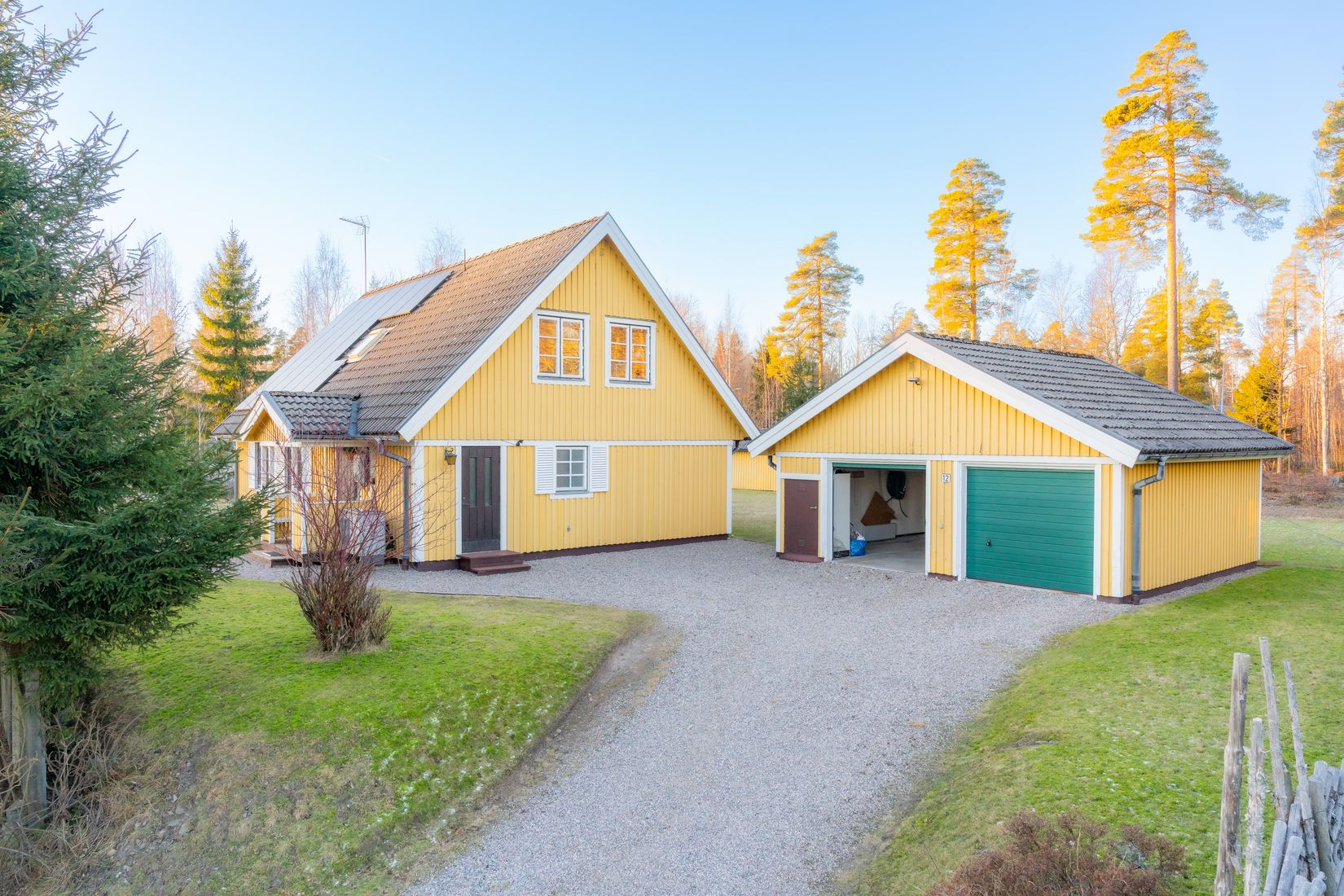 Den stora tomten erbjuder gott om plats för lek, eventuellt odling eller framtida projekt och omges av grönska som bidrar till en privat och rofylld miljö. På tomten finns även ett förråd samt ett dubbelgarage. Det rymliga garaget är perfekt för både bilar, förvaring eller hobbyverksamhet.