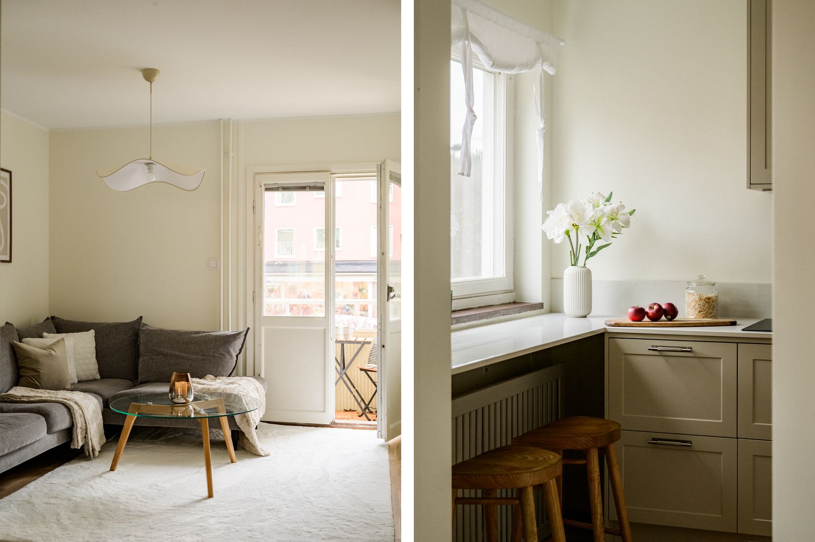 Lägenheten disponeras som en 3,5:a och har helrenoverats omsorgsfullt under 2025. Interiören går i sobra färger och andas kvalitet. Här har varje detalj tänkts igenom för att optimera standarden såväl tekniskt som estetiskt. Innanför säkerhetsdörren möts du av en rymlig hall med plats för avhängning och plats för ytterligare förvaring om så önskas. Hemmets hjärta utgörs av vardagsrum och kök i halvöppen planlösning med utgång till balkongen. Här erbjuds gott om plats för socialt umgänge, matlagning och avkoppling. Köket är effektivt utformat med god förvaringskapacitet och håller en hög materiell standard med bänkskiva i kvartskomposit och maskinell utrustning från Electrolux och AEG. Balkongen vetter mot den lummiga gården har viss sjöutsikt.