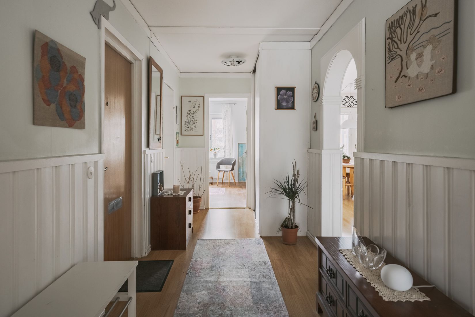Från köket nås den inglasade balkongen, en uppskattad yta som kan användas stora delar av året och som ger ett härligt extra rum för avkoppling. Balkongen är belägen i västerläge och ger kvällssol, en perfekt plats att avnjuta middagen på.