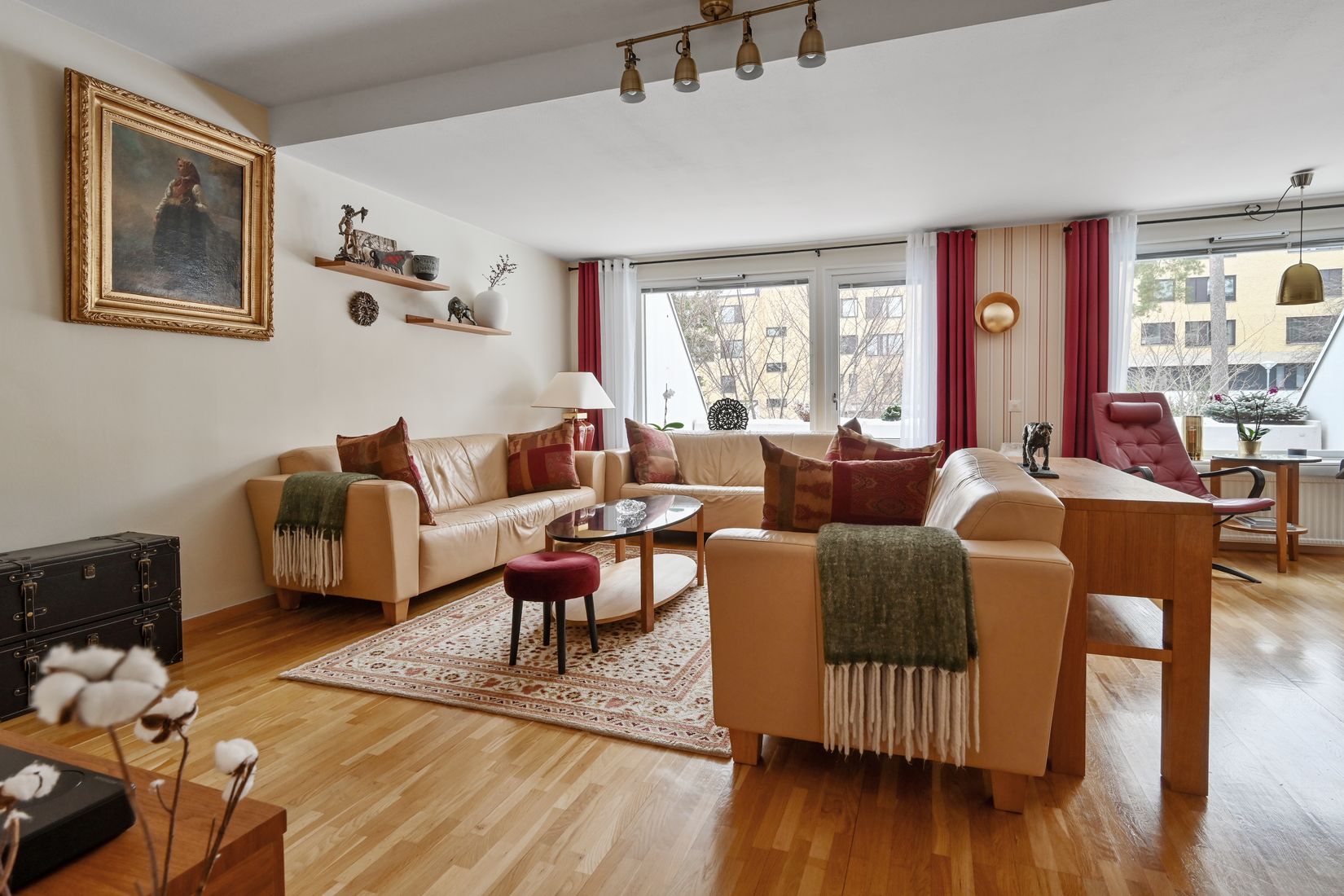 Lägenheten är utrustad med moderna bekvämligheter som gör vardagen både enkel och komfortabel. De smakfulla tapeterna från Ralph Lauren ger en exklusiv känsla och präglar hemmet med elegans. Från den trevliga terrassen i sydvästläge kan du njuta av många soliga stunder, samtidigt som du har en underbar utsikt över närområdet.