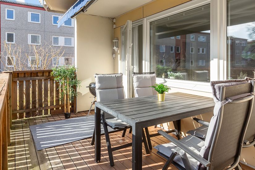 Köket är modernt och i trevligt skick med goda arbetsytor och bra förvaringsmöjligheter. Vardagsrummet är rymligt och lättmöblerat och härifrån nås bostadens mysiga altan - en fin förlängning av boendet under årets varmare månader.