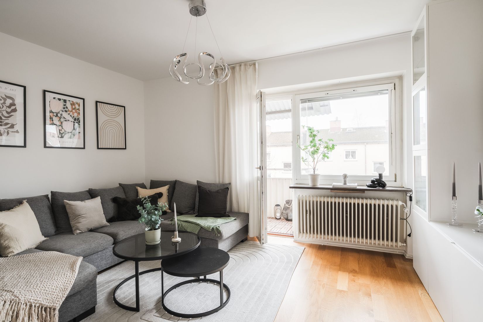 En 40-talspärla som genomgående erbjuder fräscha ytskikt och en trivsam rymd med den generösa takhöjden. Du finner här en bostad med ett stort vardagsrum som bjuder in till att möblera med diverse möbleringsalternativ och direktaccess till den soliga balkongen i sydväst. Ett smakfullt kök med plats för matgrupp för 4 personer. Vidare finns ett generöst sovrum med gott om förvaring och plats för att möblera med dubbelsäng och sängbord. Välkomnande hall med avhägningsmöjligheter samt ett snyggt helkaklat badrum med duschhörna.