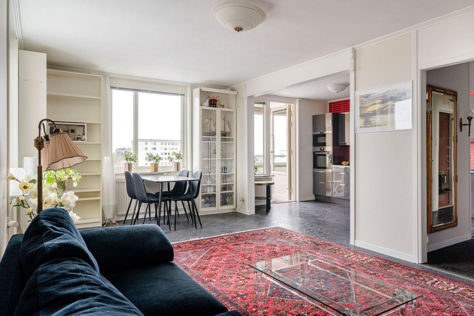 Inbjudande hall med goda avhängnings möjligheter. Helkaklat badrum med dusch och goda tvättmöjligheter via tvättmaskin. Socialt vardagsrum i öppen planlösning mot matplats och kök vilket bjuder in till sociala sammanhang tillsammans med familj och vänner. Plats för diverse möblemang och stor inredningspotential efter egen smak och tycke. Flertalet stora fönsterpartier som släpper in rikligt med dagsljus samt ger rummet en luftig och öppen känsla. Köket har stilrena materialval i form av köksluckor, vitvaror samt erbjuder god arbetsyta via bänkskiva. Direkt utgång från köket till bostadens stora inglasade balkong i optimalt solläge. Njut av den fantastiska utsikten och solen hela dagen. Rogivande sovrum med plats för dubbelsäng, nattduksbord samt goda förvaringsmöjligheter via inbyggda garderober. Bostaden erbjuder optimala förvaringsmöjligheter i form av klädkammare inne i lägenheten samt källarförråd.
